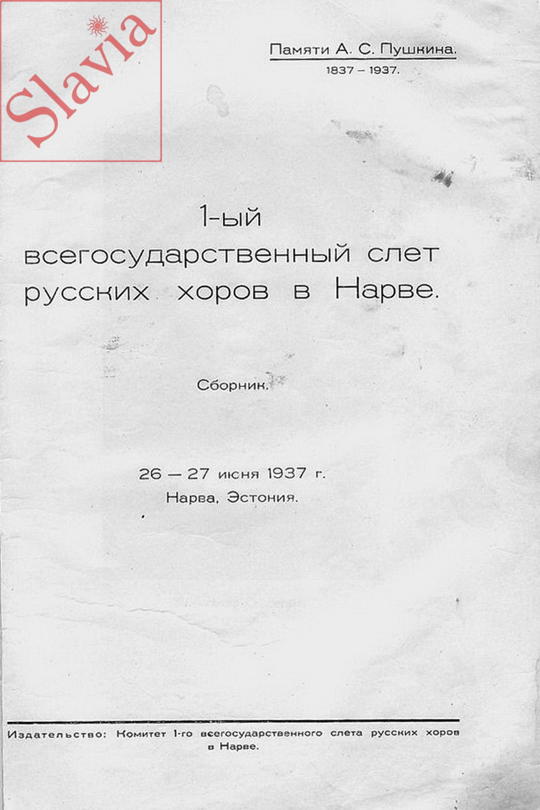 Сборник 1-го всегосударственного слёта русских хоров в Нарве. 26-27 июня 1937 г. (весь сборник см. здесь)
