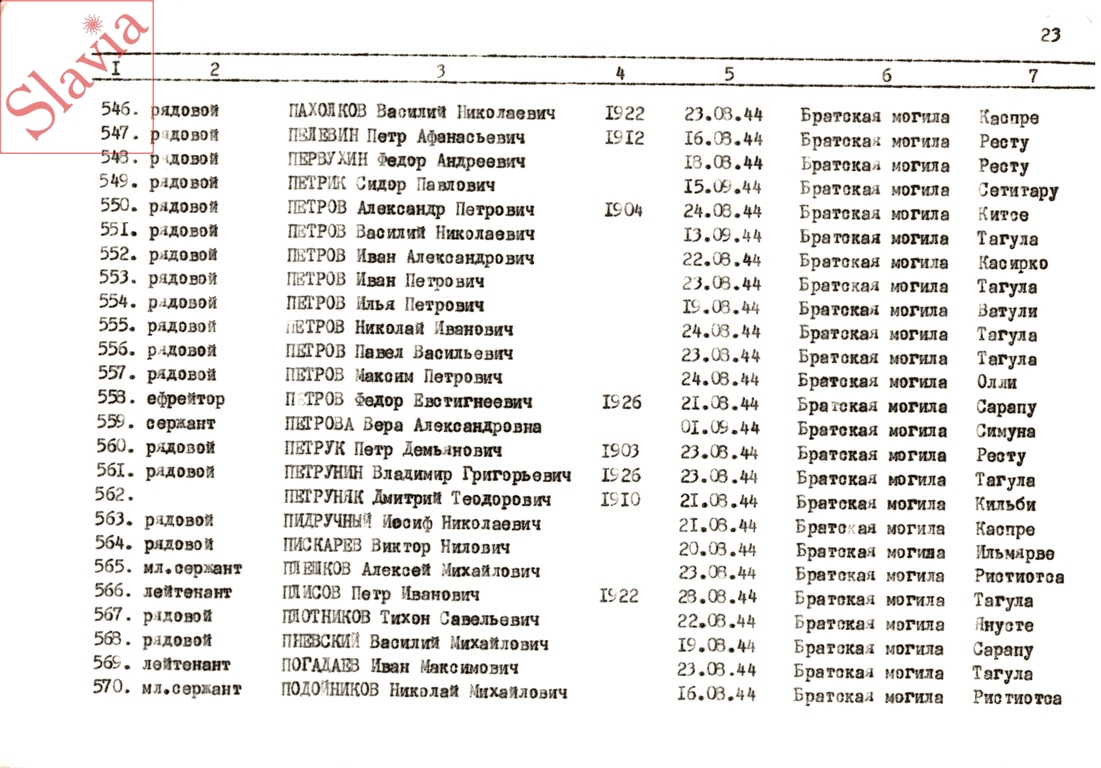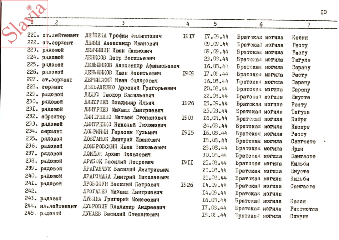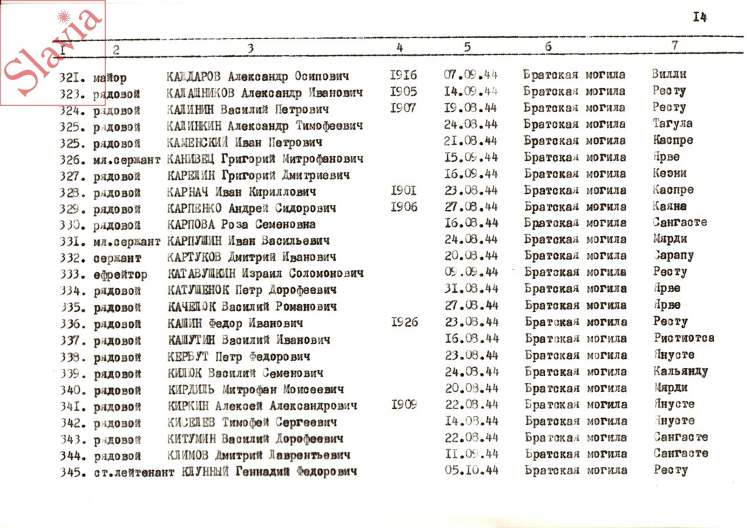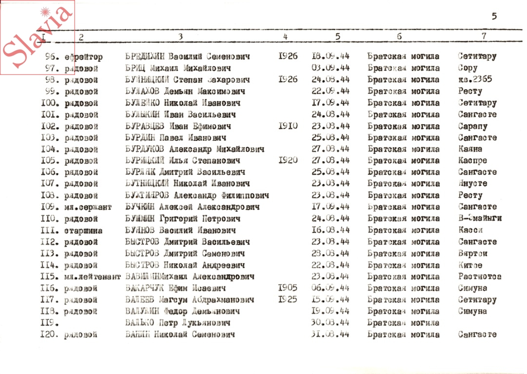ПЕРСОНАЛЬНЫЕ СВЕДЕНИЯ О ЗАХОРОНЕННЫХ В БРАТСКОЙ МОГИЛЕ (по состоянию на 12 августа 1991 г.)