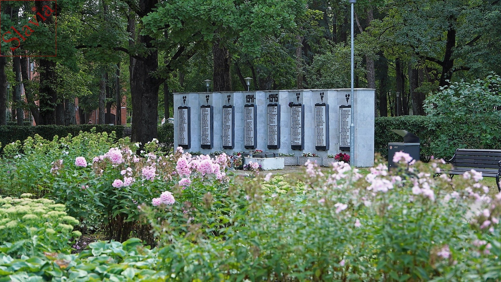 «Мемориальная стена павшим красноармейцам была размещена в Нарвском парке Победы в 1993 году».
