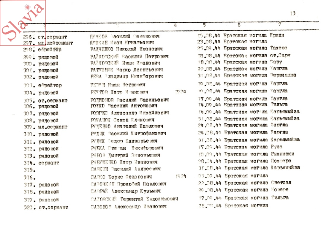 ПЕРСОНАЛЬНЫЕ СВЕДЕНИЯ О ЗАХОРОНЕННЫХ В БРАТСКОЙ МОГИЛЕ (по состоянию на 12 августа 1991 г.)