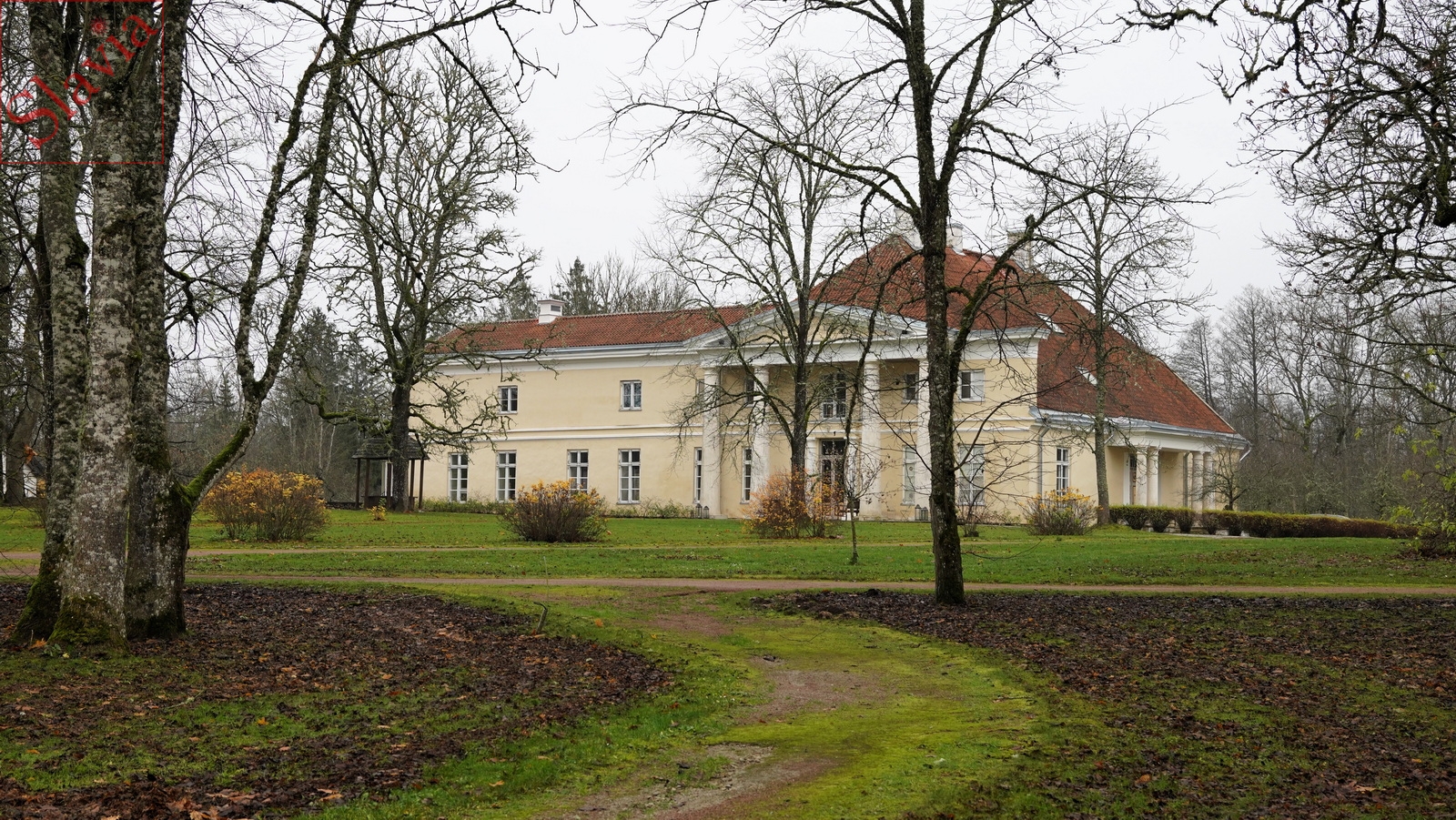 «Первое упоминание в 1379 году. В современном главном здании сохранились фрагменты XVII и XVIII веков. Считается, что старейшей частью здания является S-образное крыло, построенное в середине XVIII века при графе П. А. Меллини.