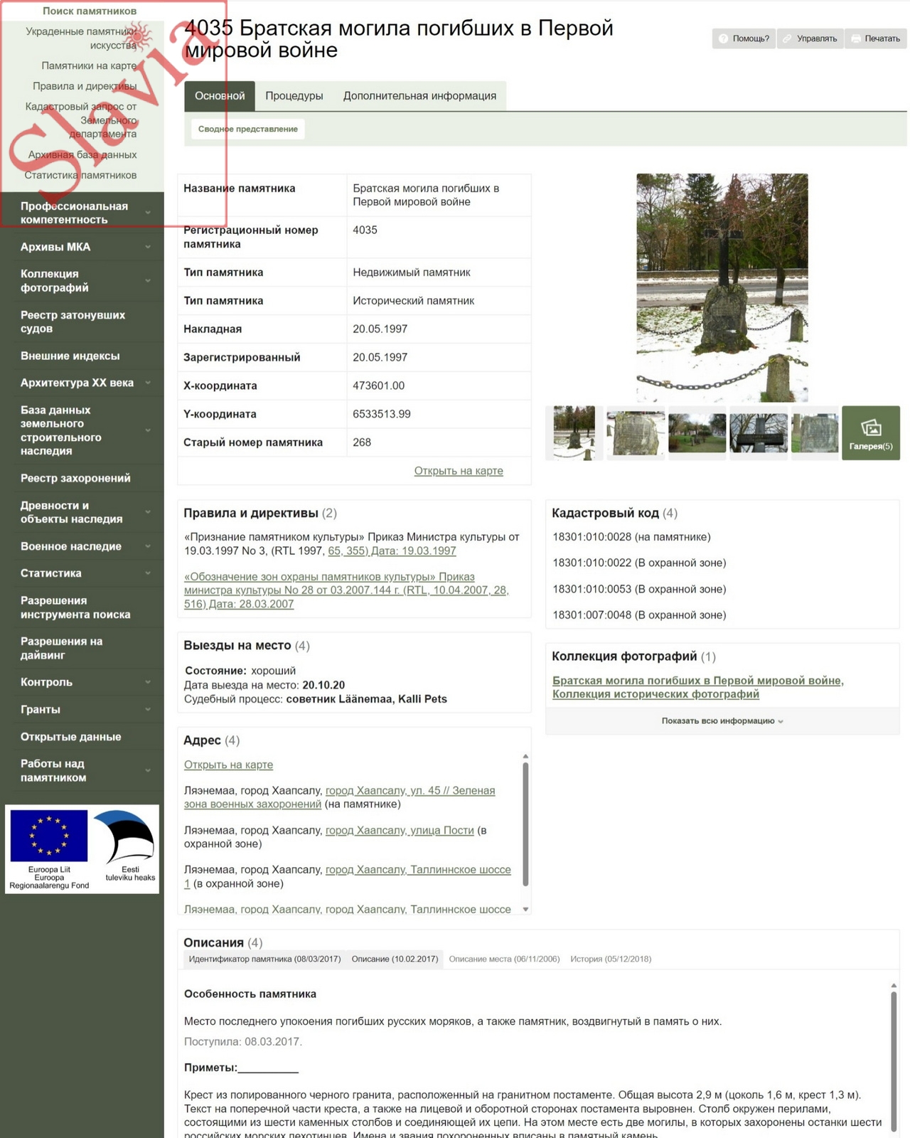 «Признание памятником культуры» Приказ Министра культуры от 19.03.1997 No 3, (RTL 1997, 65, 355) Дата: 19.03.1997.