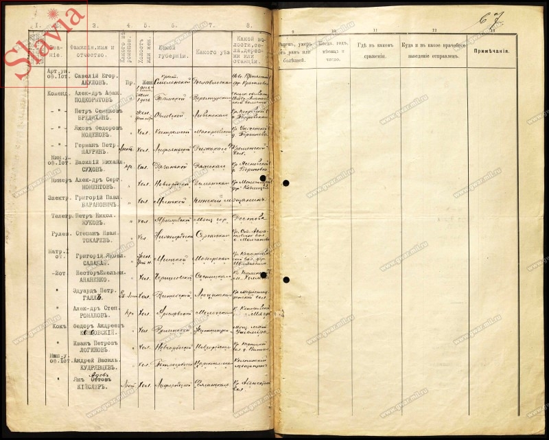 - матрос I статьи Григорiй Яковлевъ Салабай, православного вероисповедания, женат (детей нет), крестьянин Минской губернии Мозырского уезда Копаткевичской волости деревни Ивлейкевичи