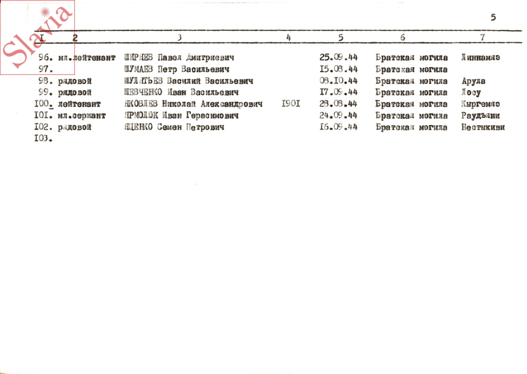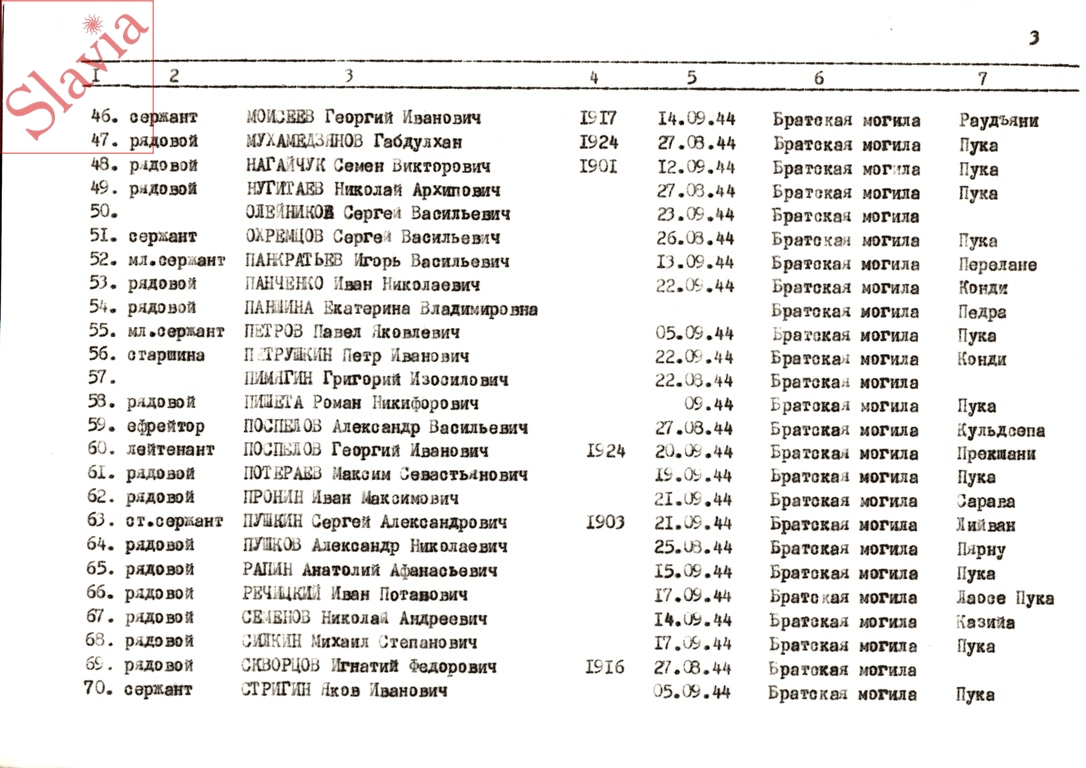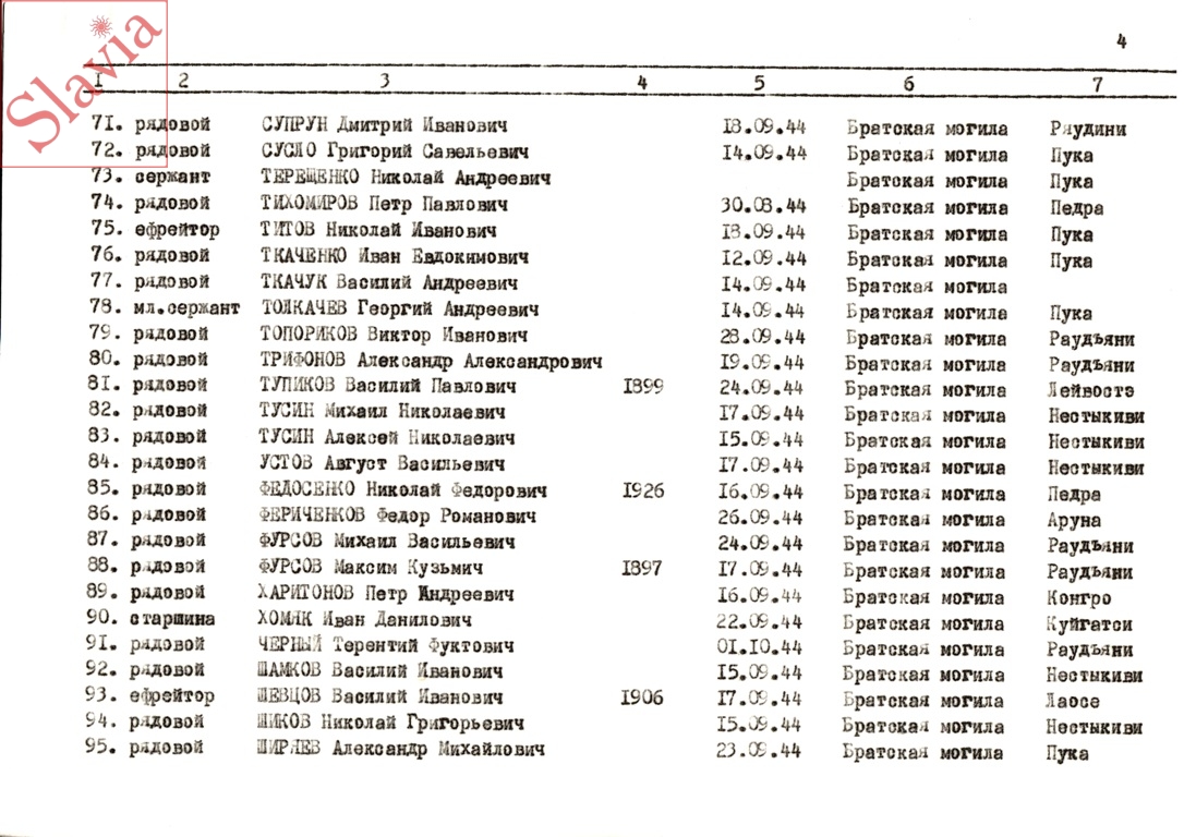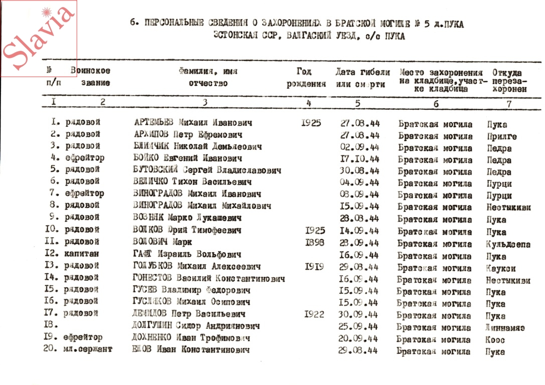 ПЕРСОНАЛЬНЫЕ СВЕДЕНИЯ О ЗАХОРОНЕННЫХ В БРАТСКОЙ МОГИЛЕ (по состоянию на 12 августа 1991 г.)