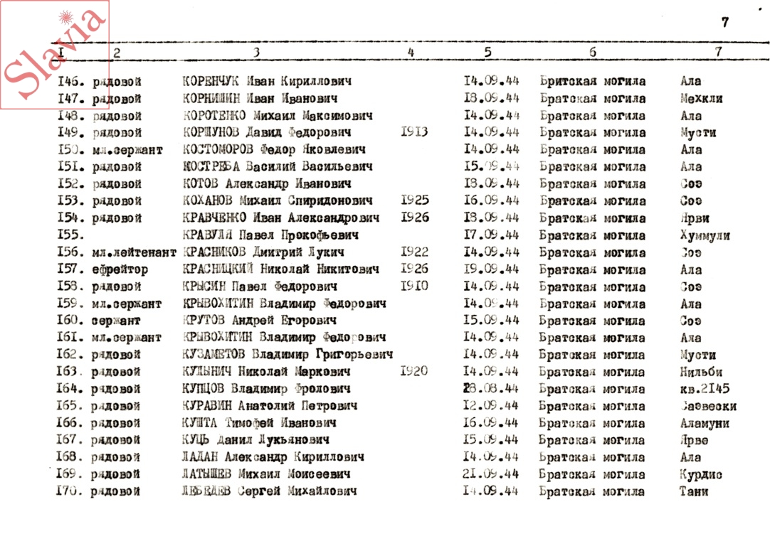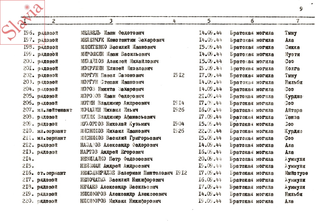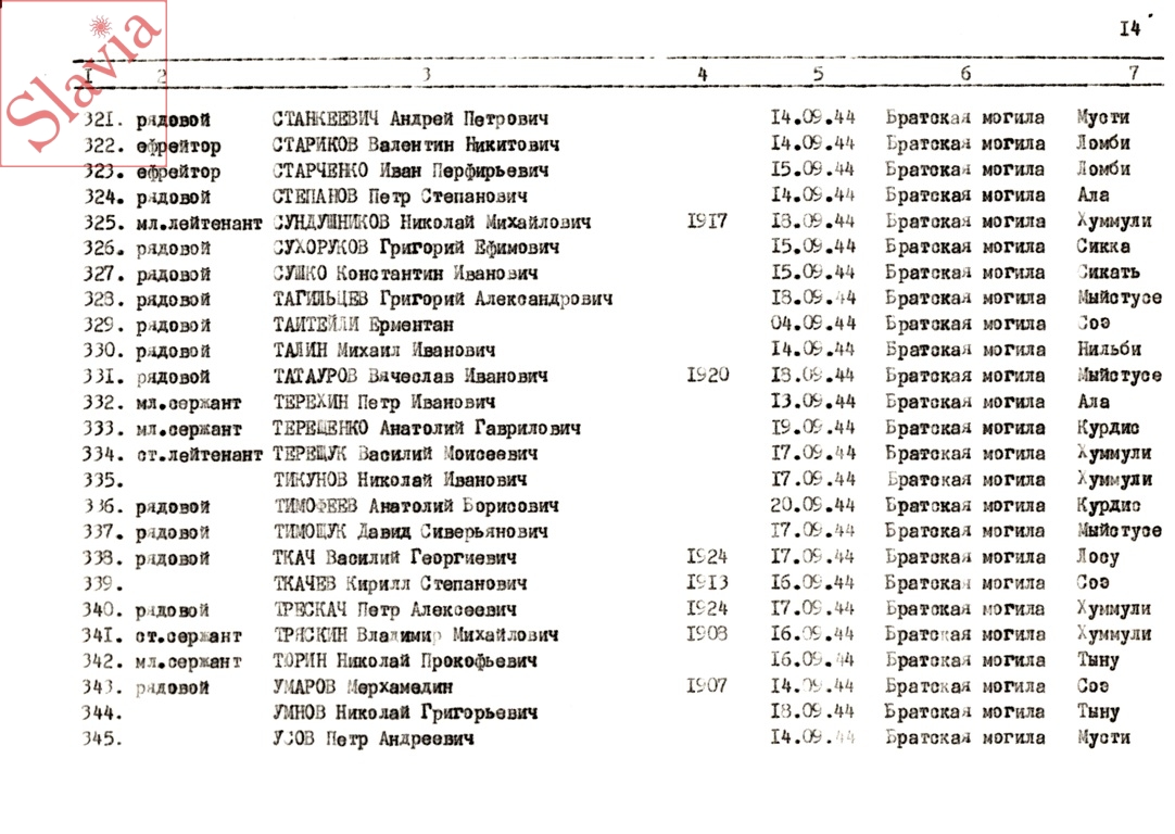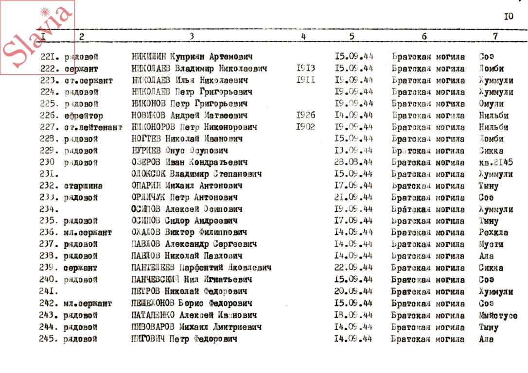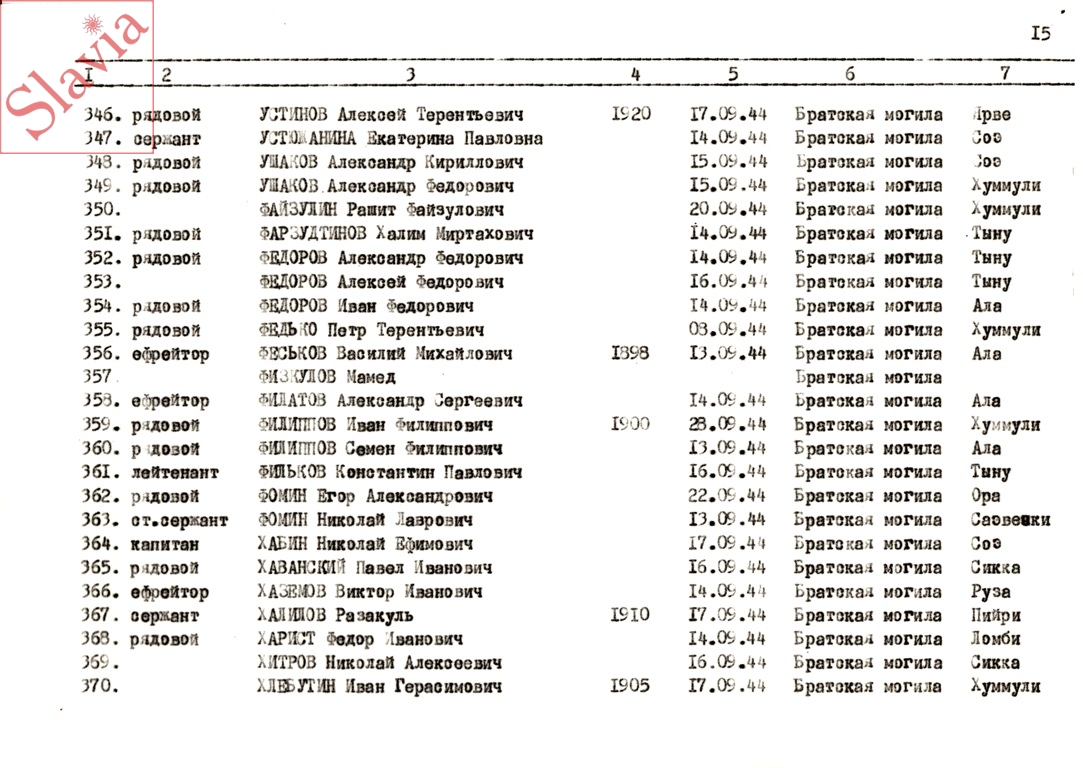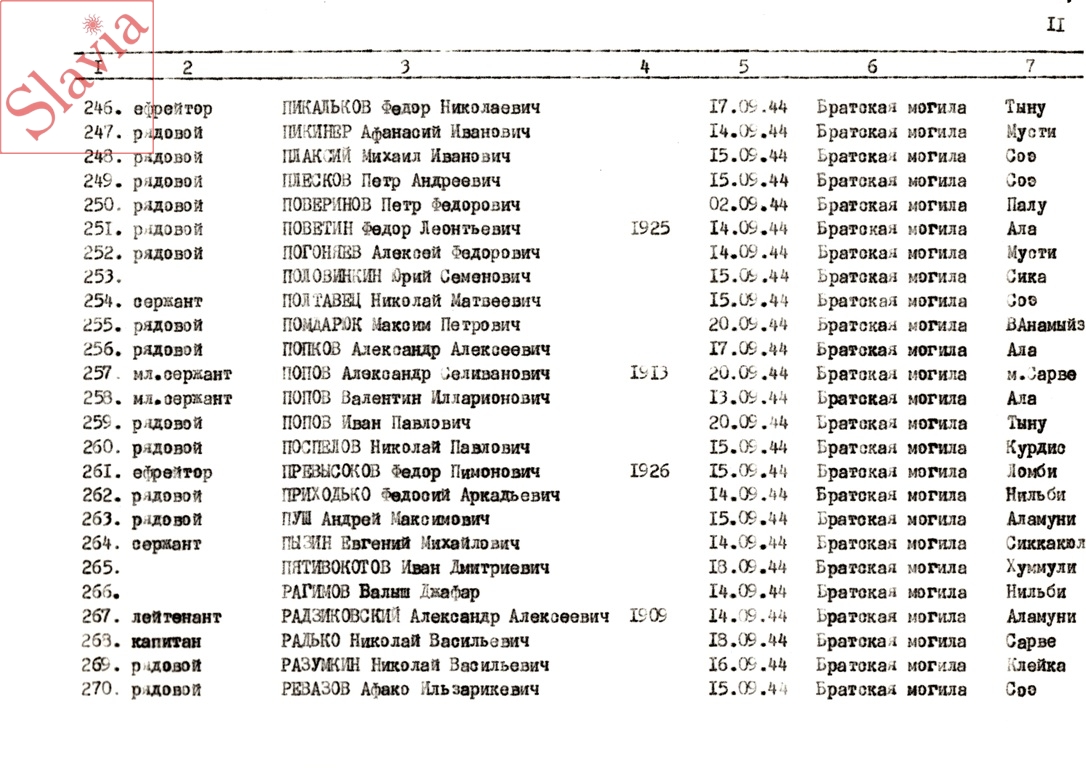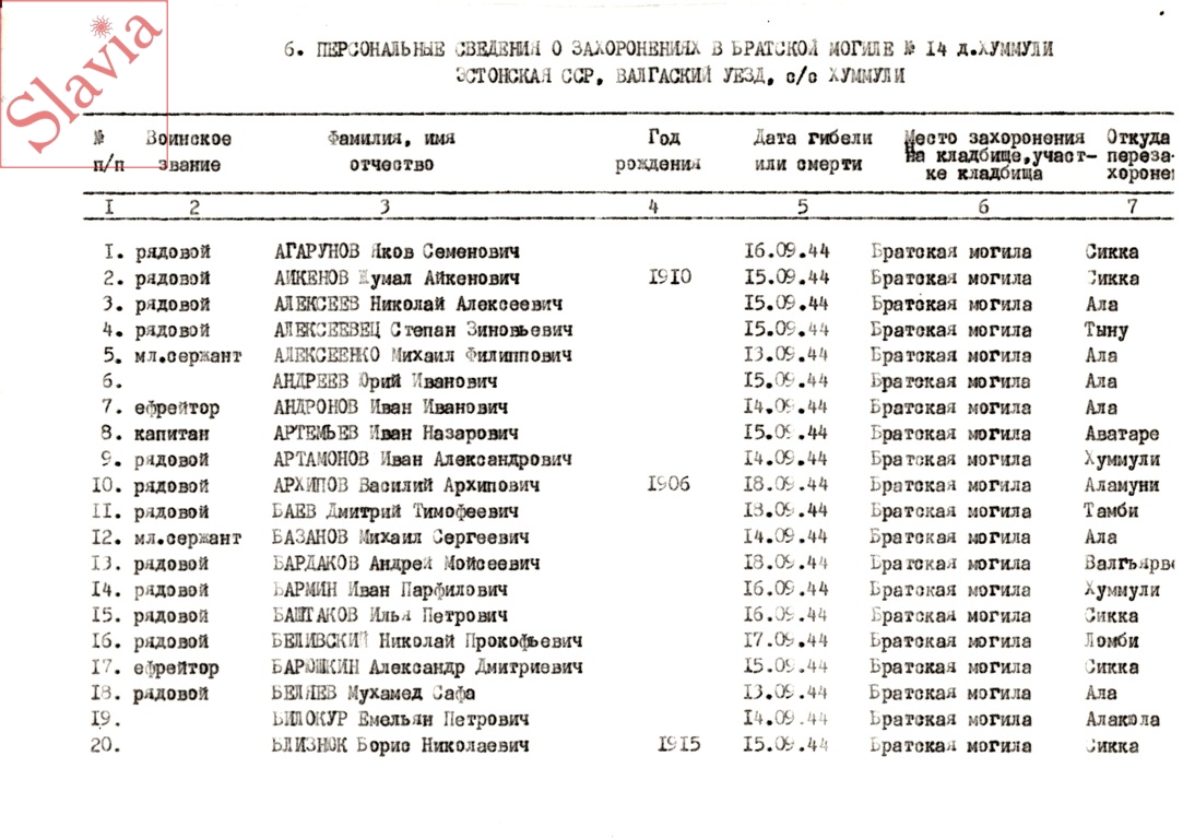 ПЕРСОНАЛЬНЫЕ СВЕДЕНИЯ О ЗАХОРОНЕННЫХ В БРАТСКОЙ МОГИЛЕ (по состоянию на 12 августа 1991 г.)