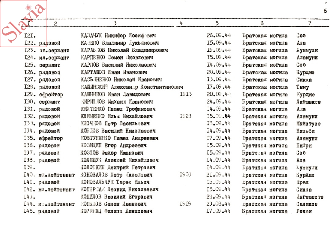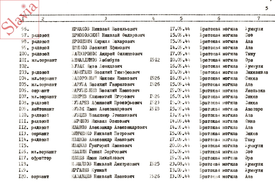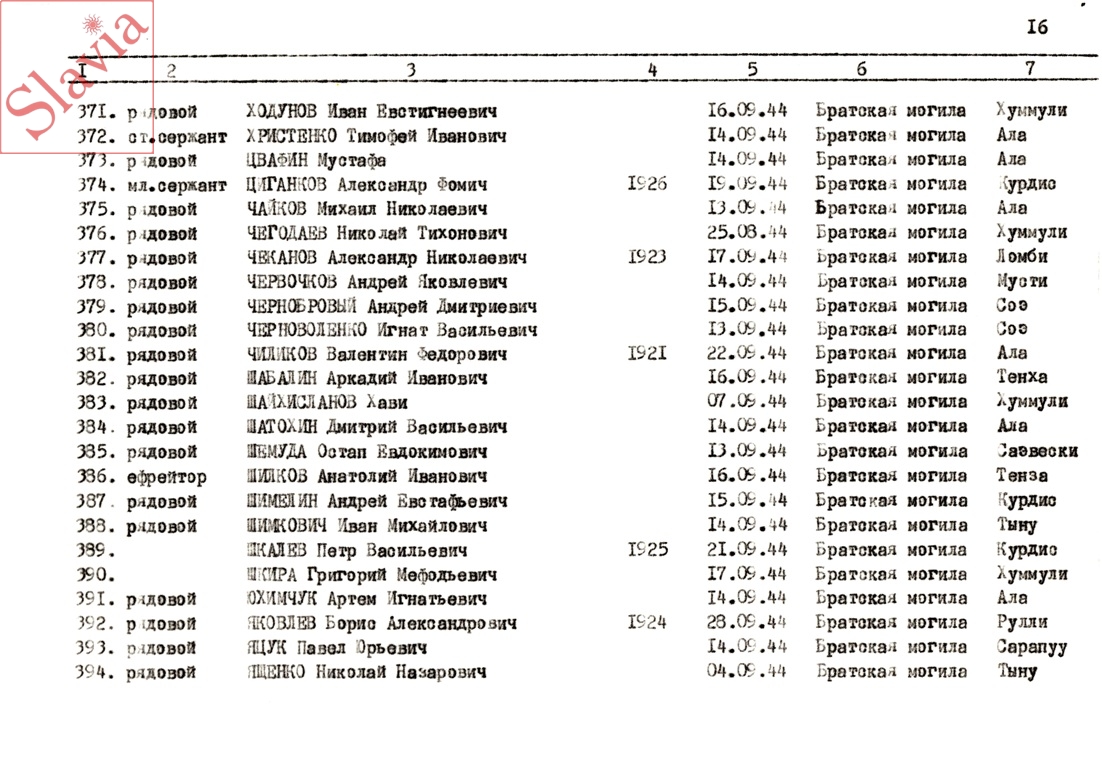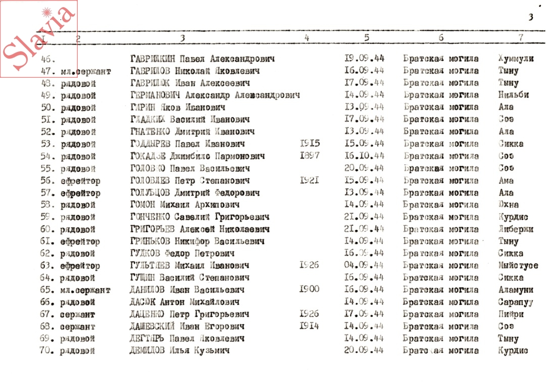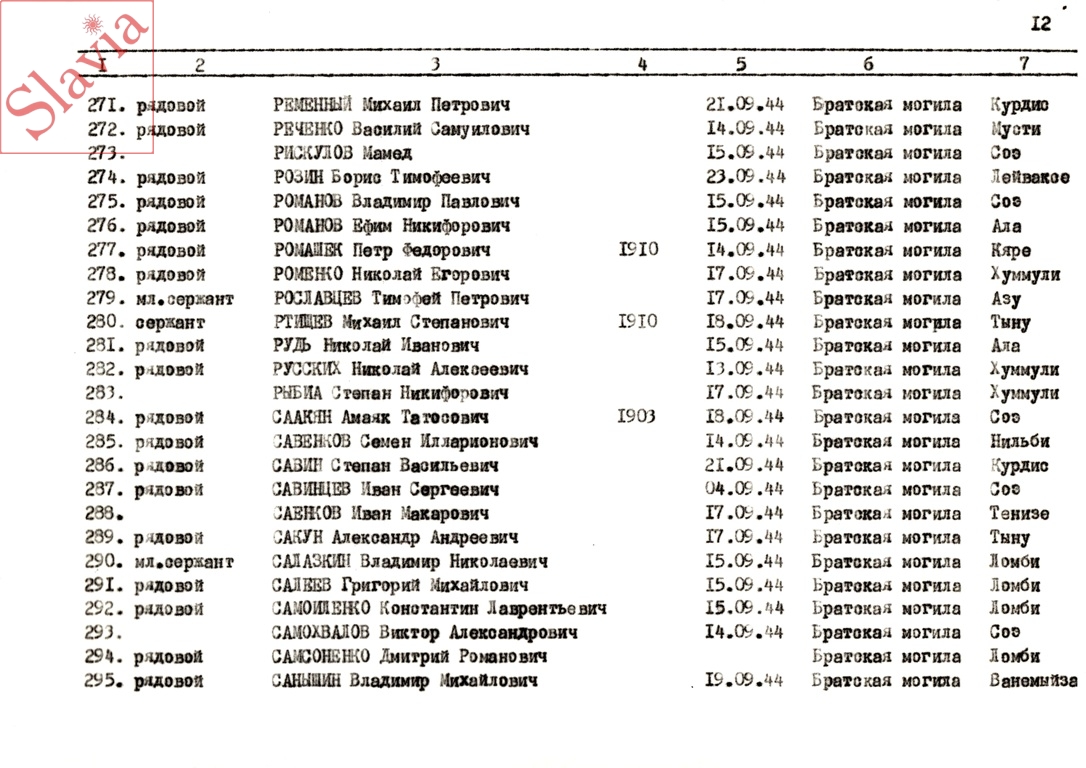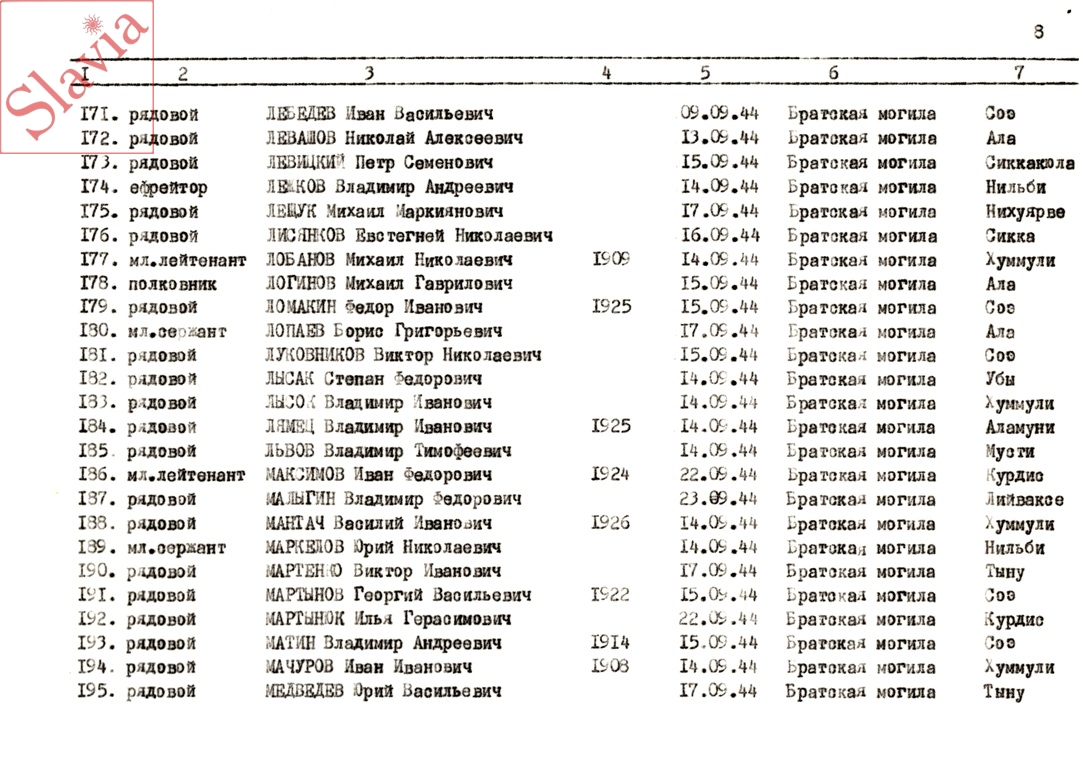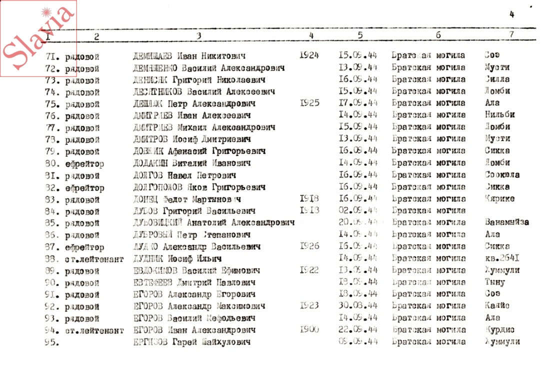 ПЕРСОНАЛЬНЫЕ СВЕДЕНИЯ О ЗАХОРОНЕННЫХ В БРАТСКОЙ МОГИЛЕ (по состоянию на 12 августа 1991 г.)