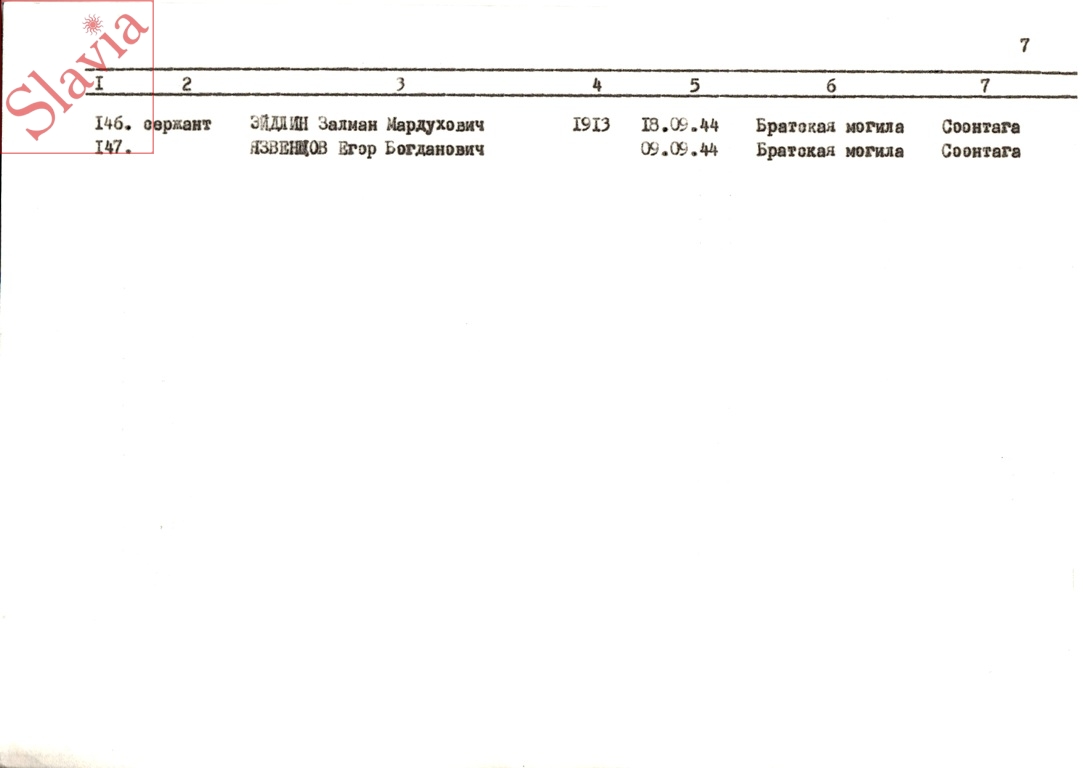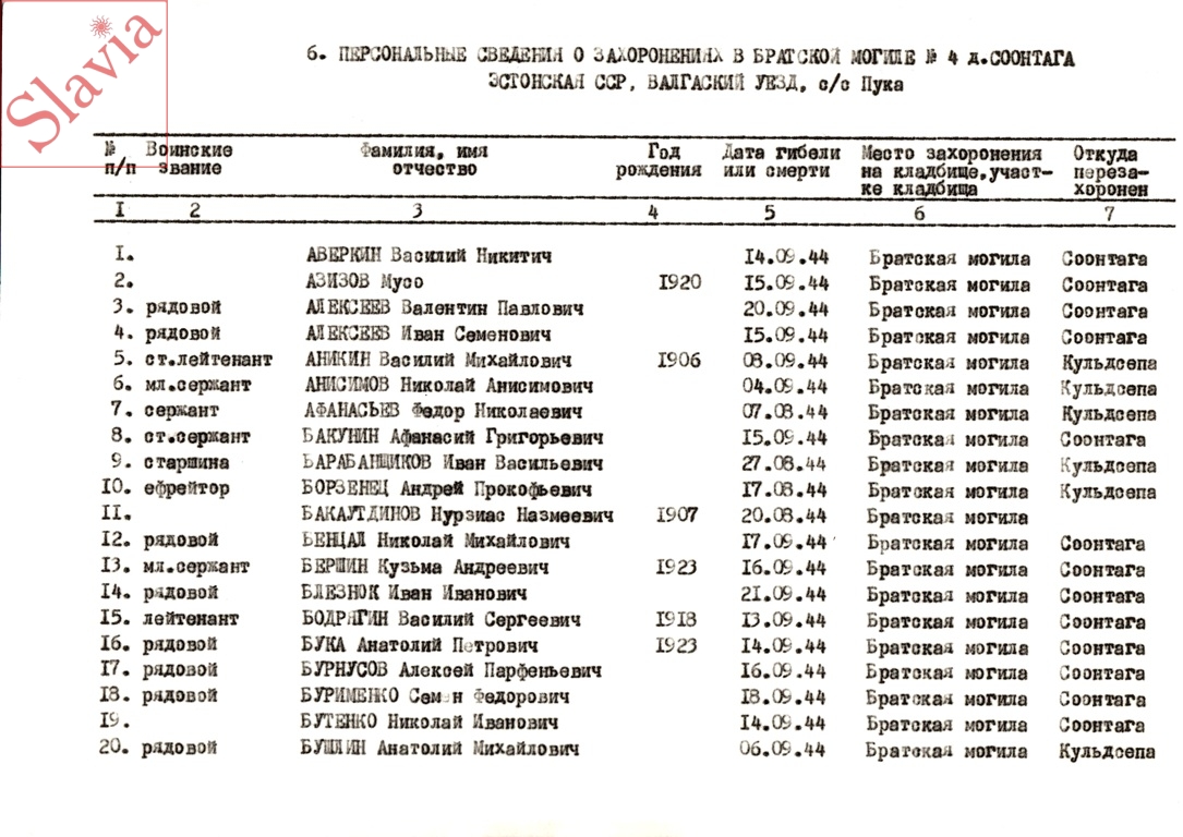 ПЕРСОНАЛЬНЫЕ СВЕДЕНИЯ О ЗАХОРОНЕННЫХ В БРАТСКОЙ МОГИЛЕ (по состоянию на 12 августа 1991 г.)
