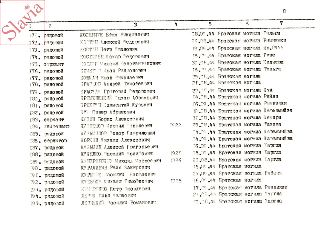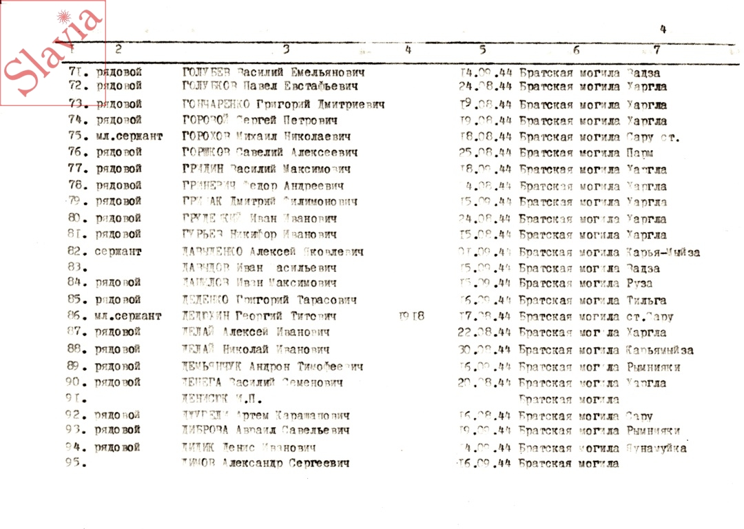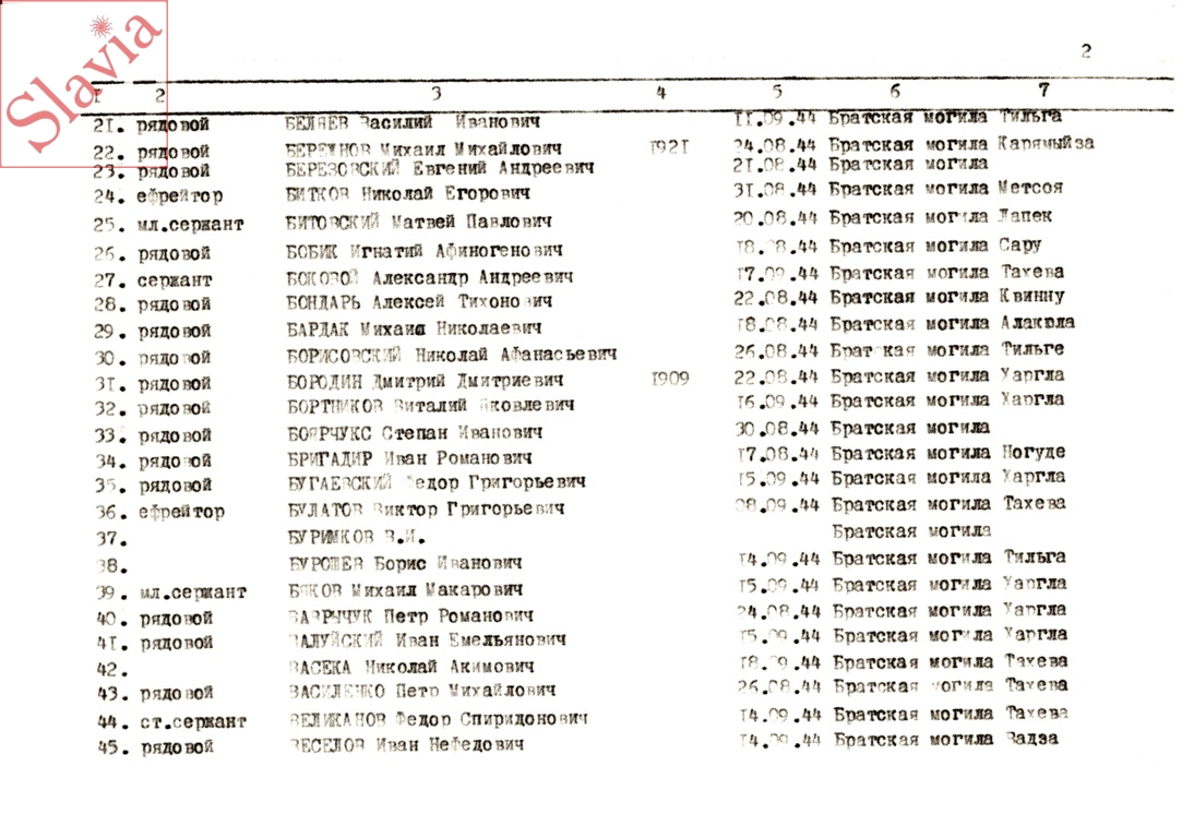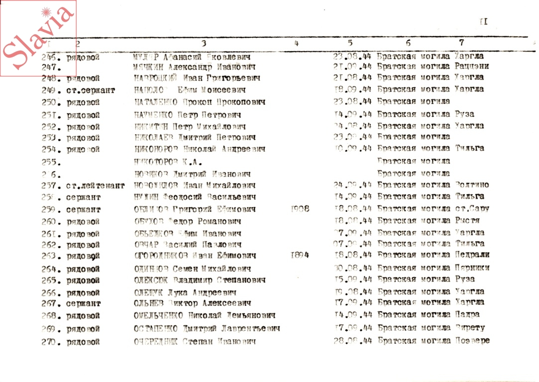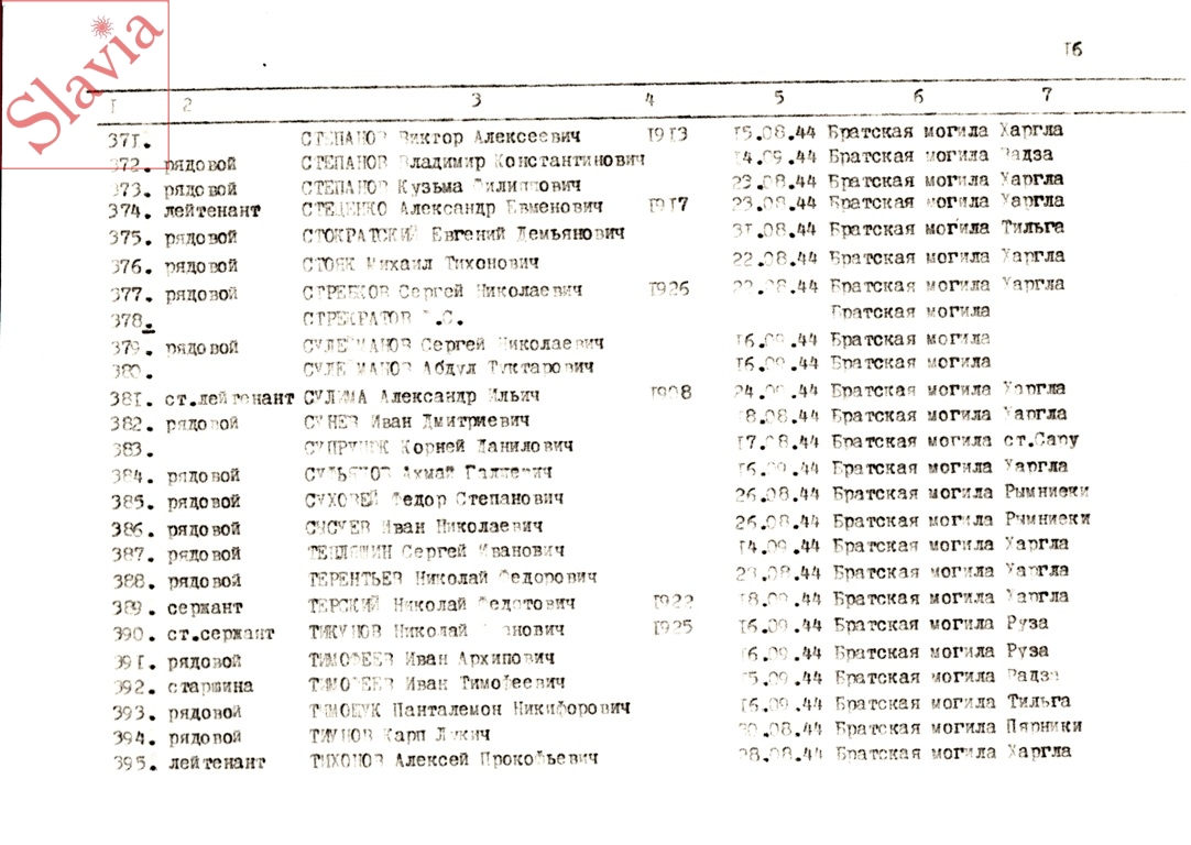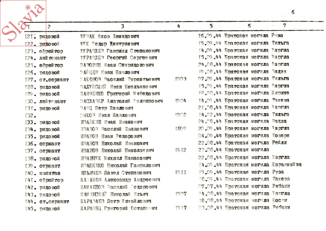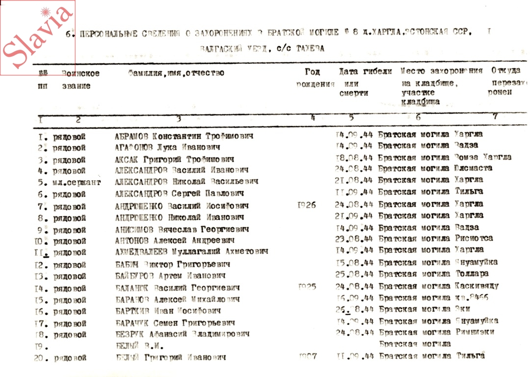 ПЕРСОНАЛЬНЫЕ СВЕДЕНИЯ О ЗАХОРОНЕННЫХ В БРАТСКОЙ МОГИЛЕ (по состоянию на 12 августа 1991 г.)