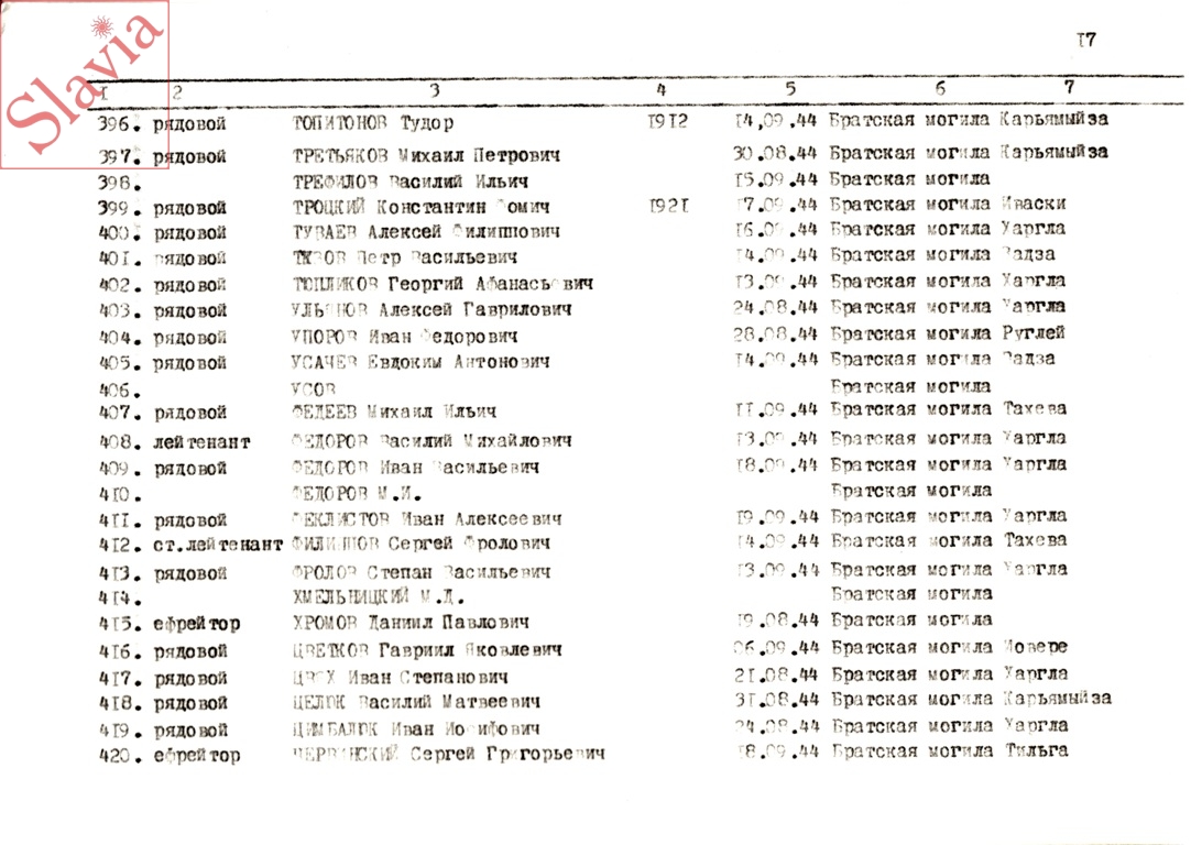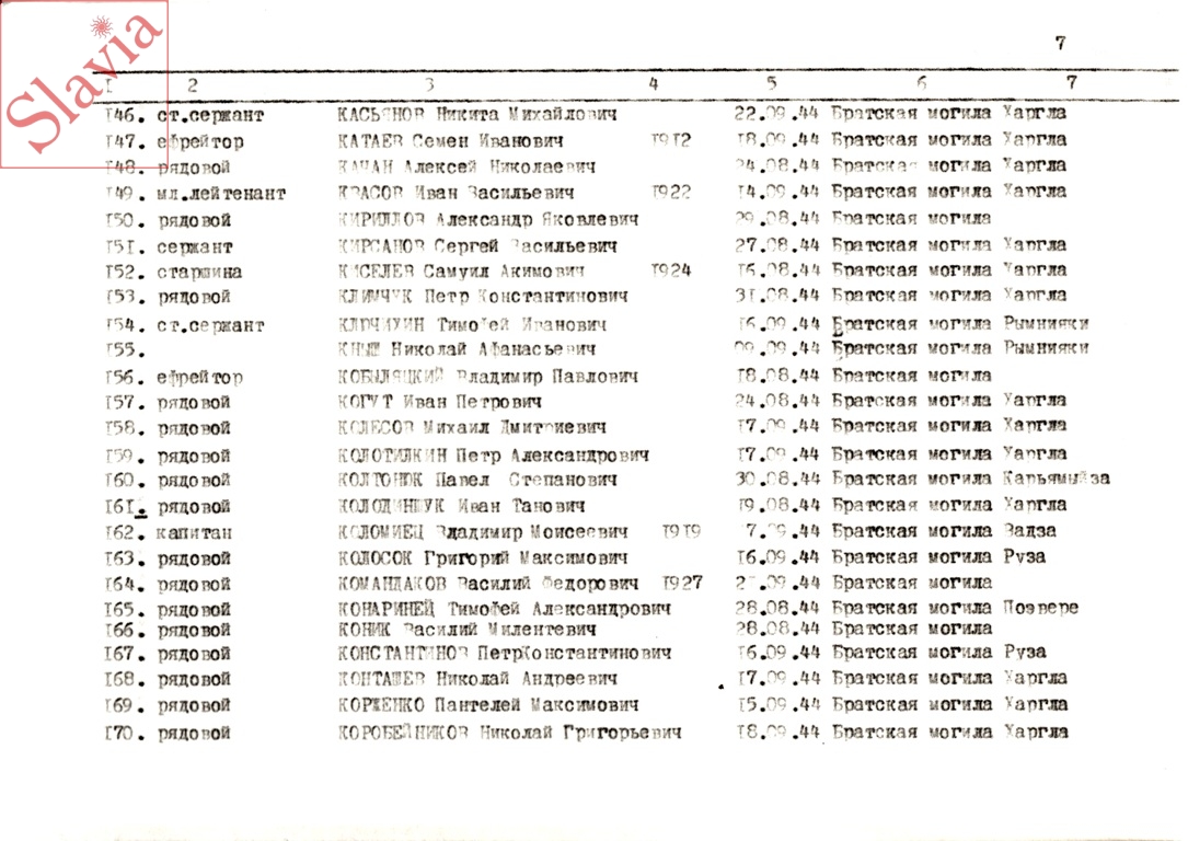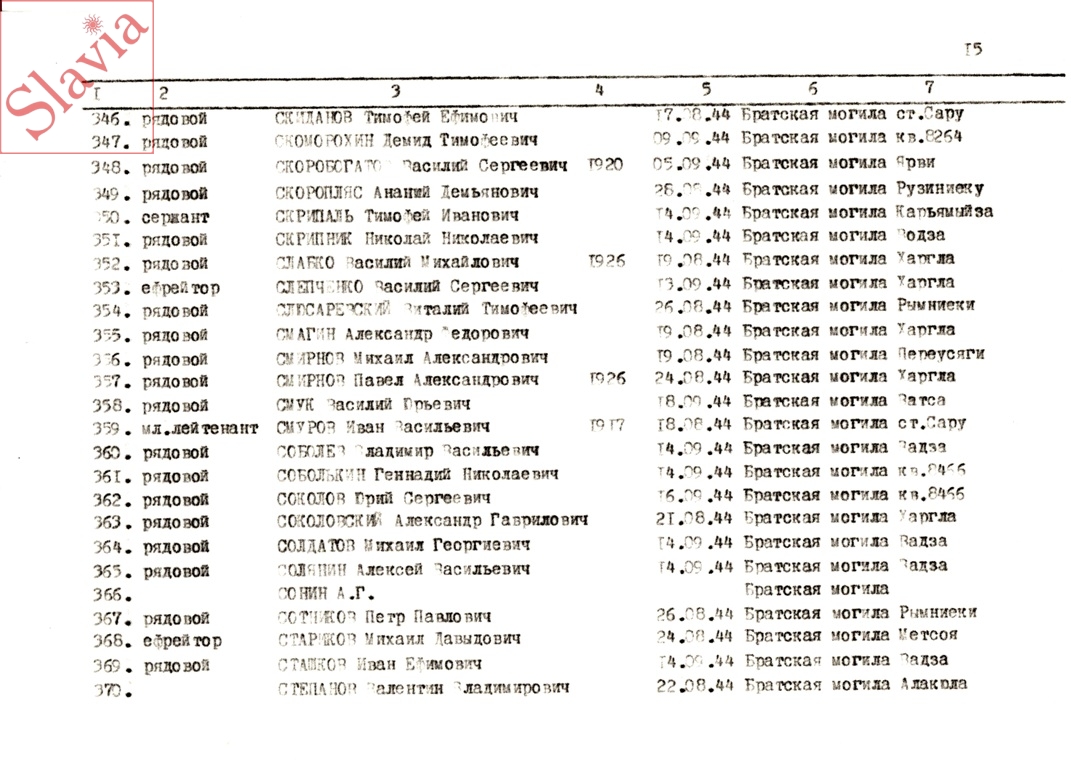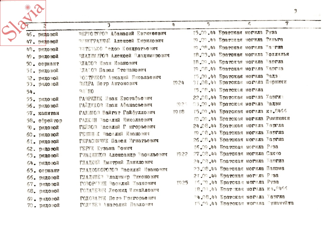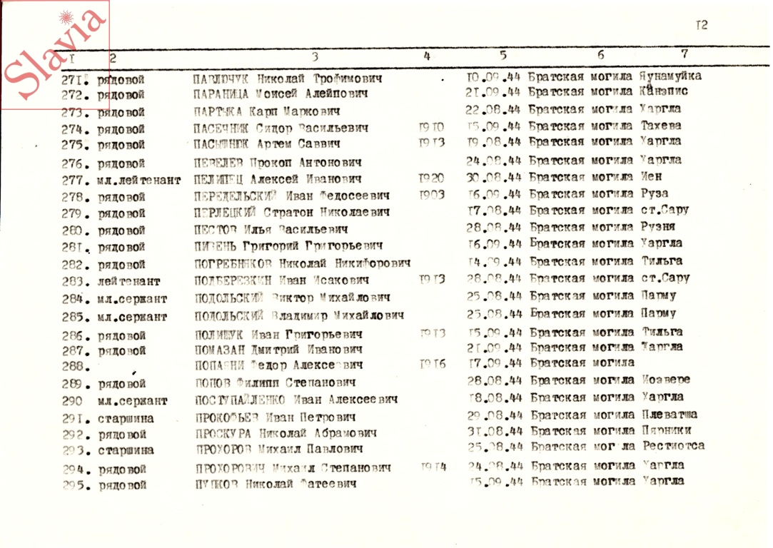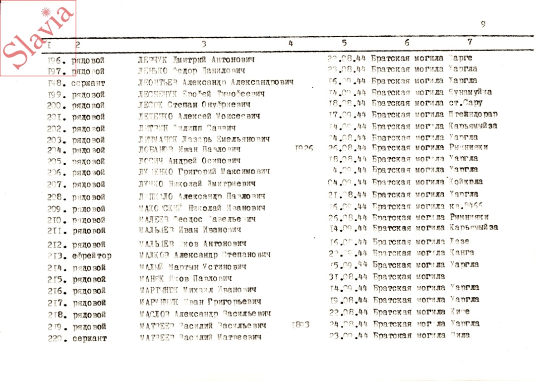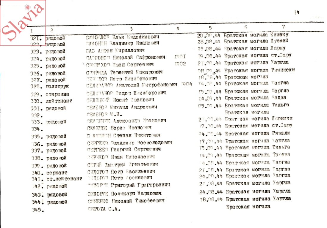 ПЕРСОНАЛЬНЫЕ СВЕДЕНИЯ О ЗАХОРОНЕННЫХ В БРАТСКОЙ МОГИЛЕ (по состоянию на 12 августа 1991 г.)