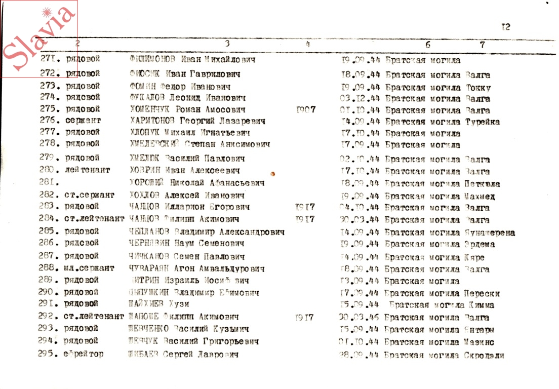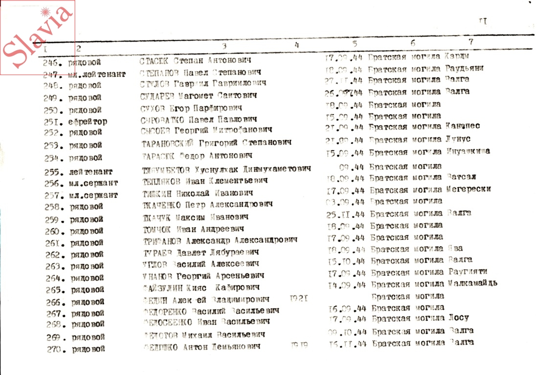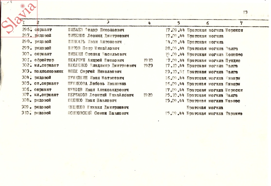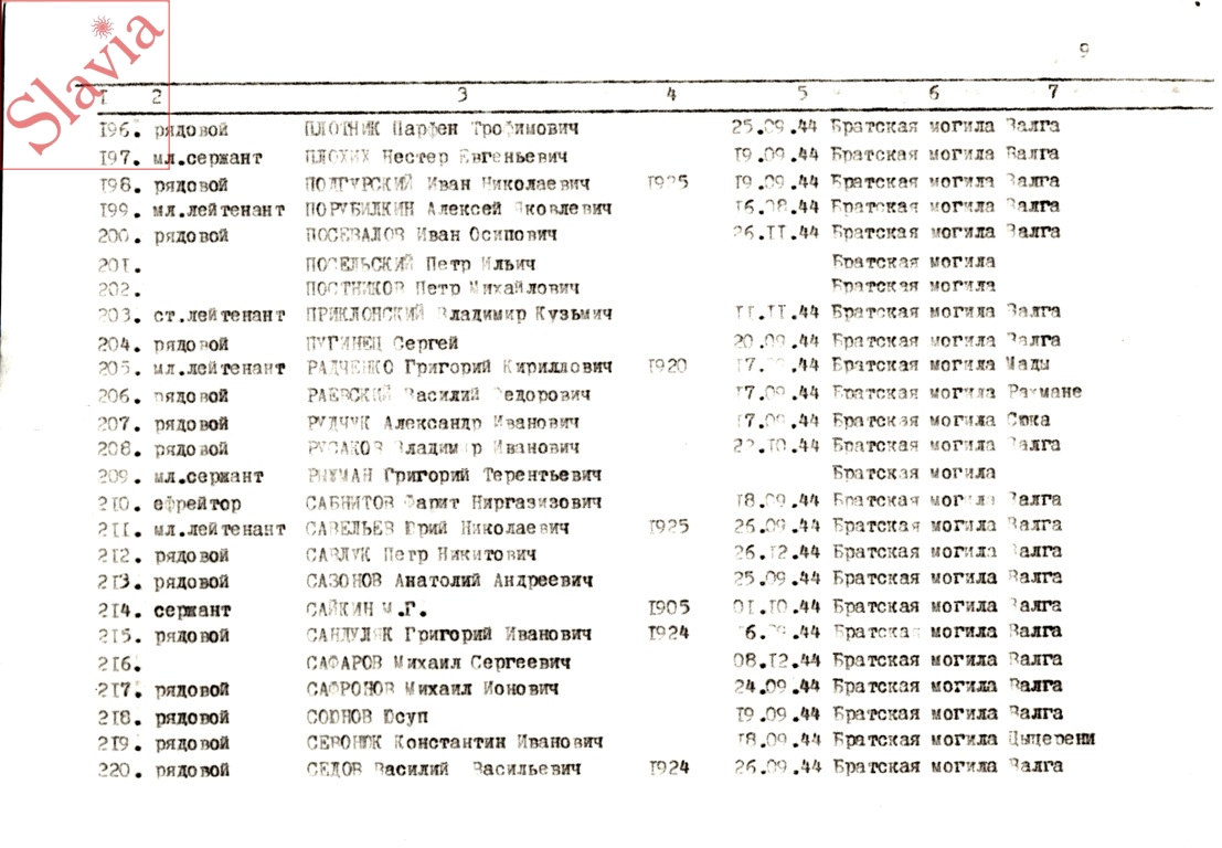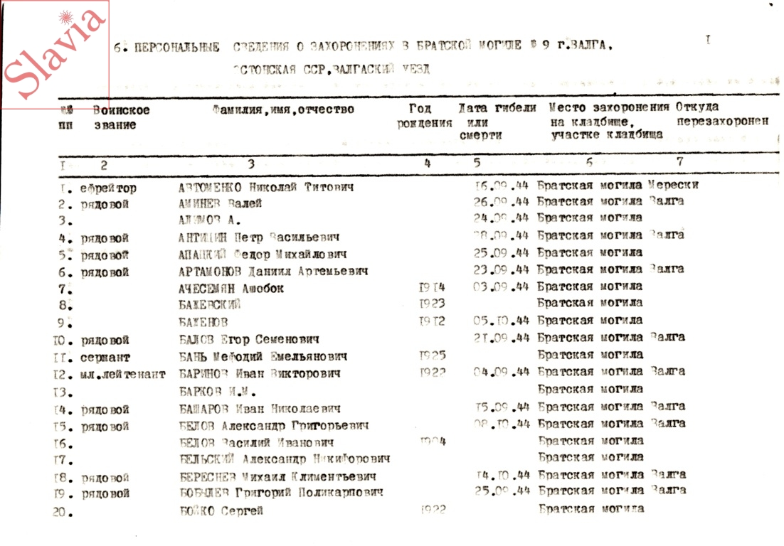 ПЕРСОНАЛЬНЫЕ СВЕДЕНИЯ О ЗАХОРОНЕННЫХ В БРАТСКОЙ МОГИЛЕ (по состоянию на 12 августа 1991 г.)