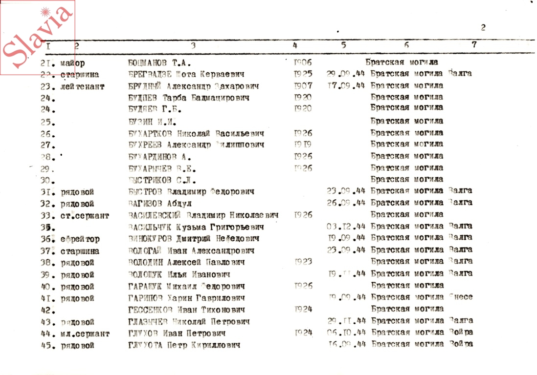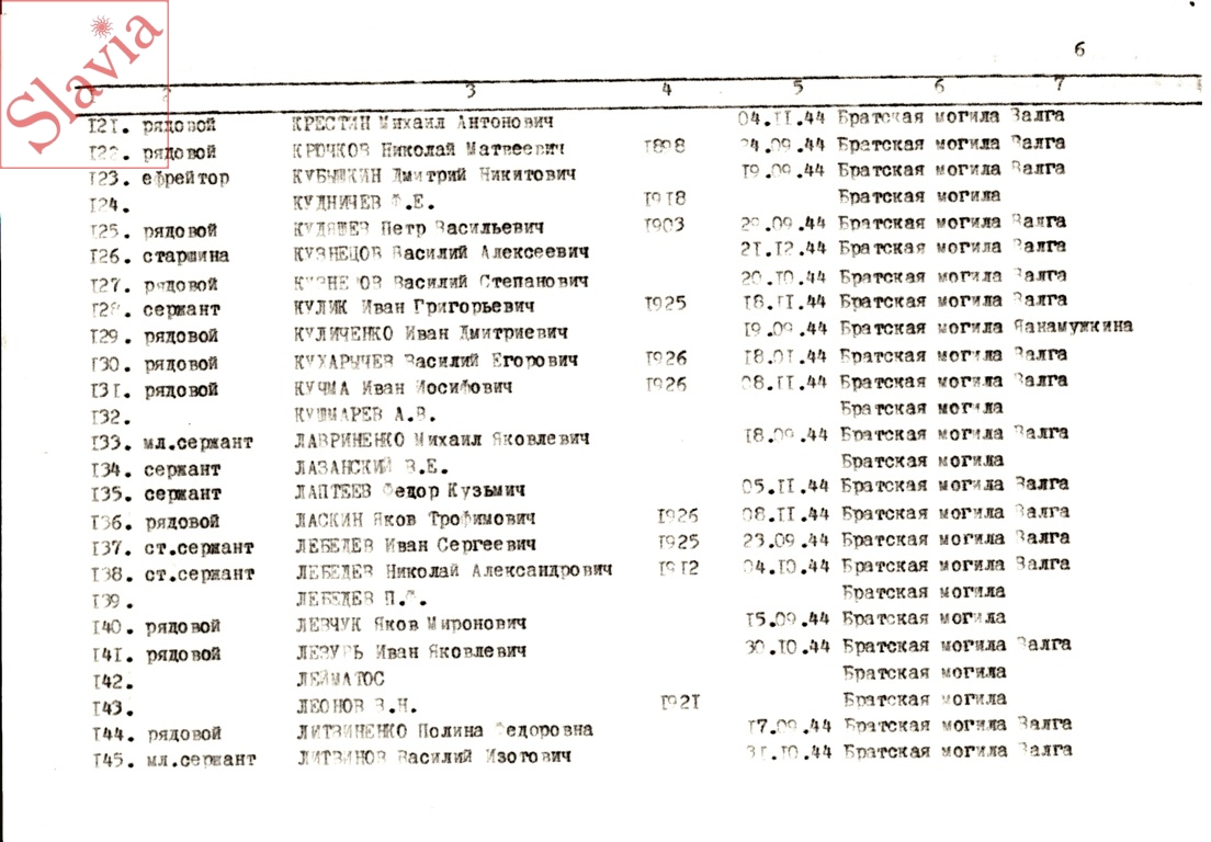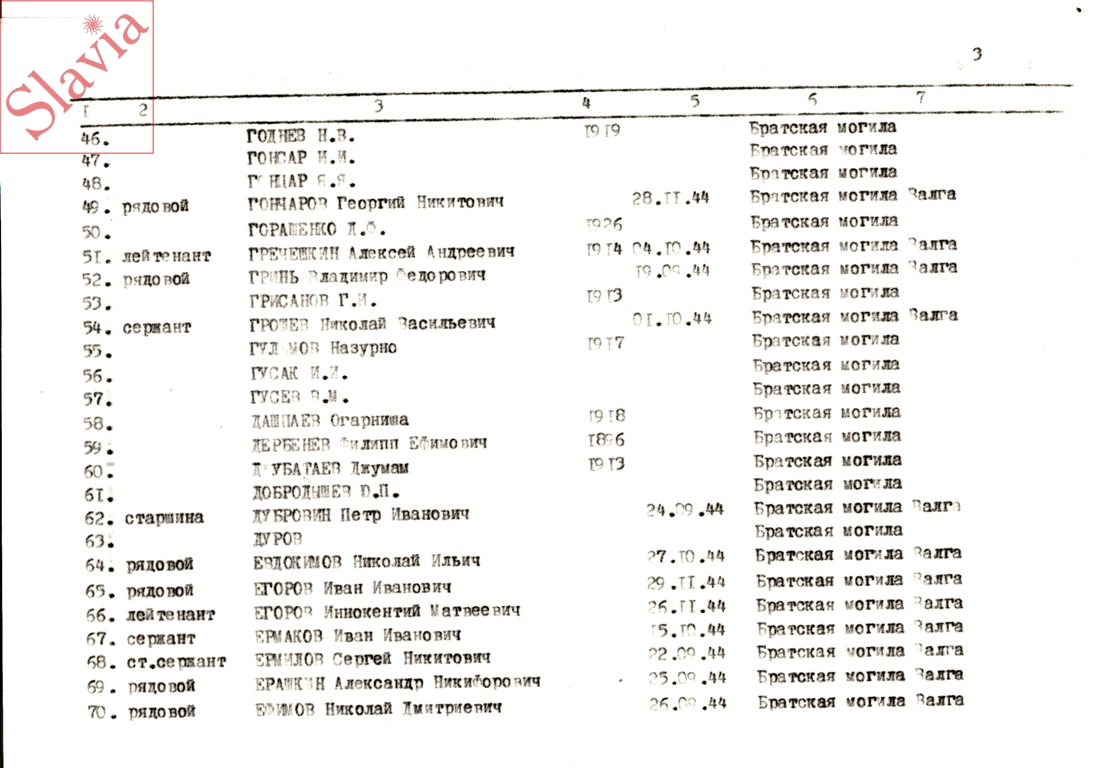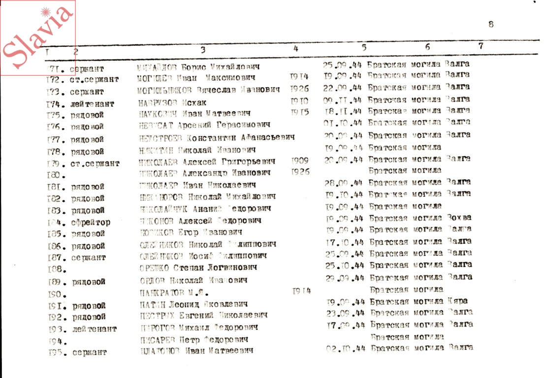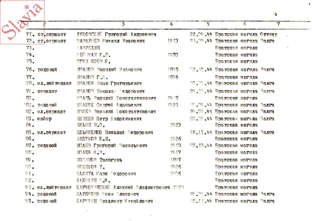 ПЕРСОНАЛЬНЫЕ СВЕДЕНИЯ О ЗАХОРОНЕННЫХ В БРАТСКОЙ МОГИЛЕ (по состоянию на 12 августа 1991 г.)