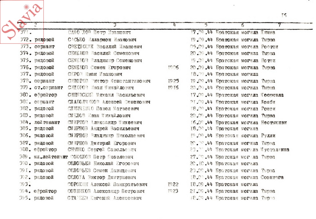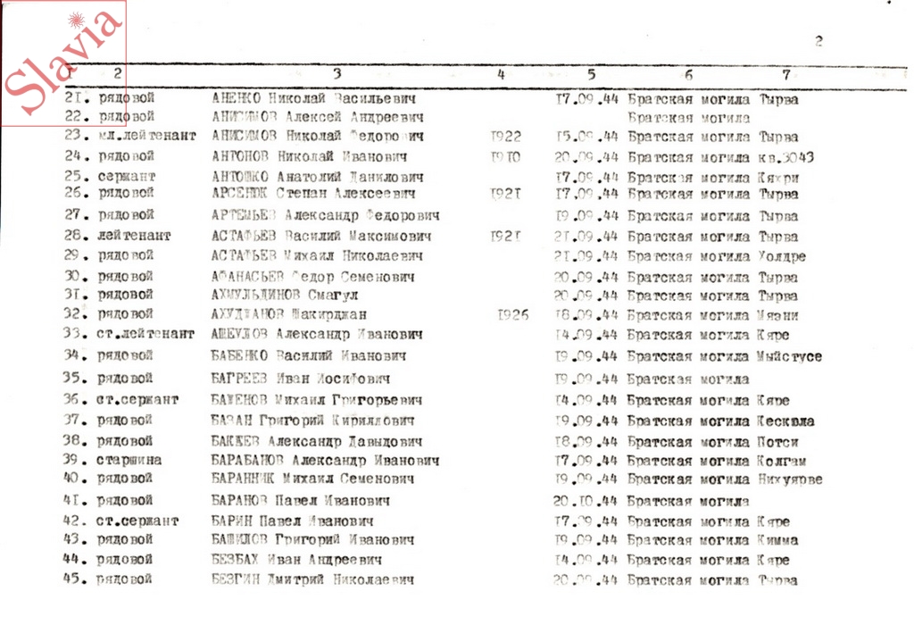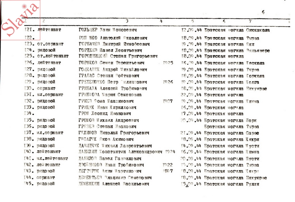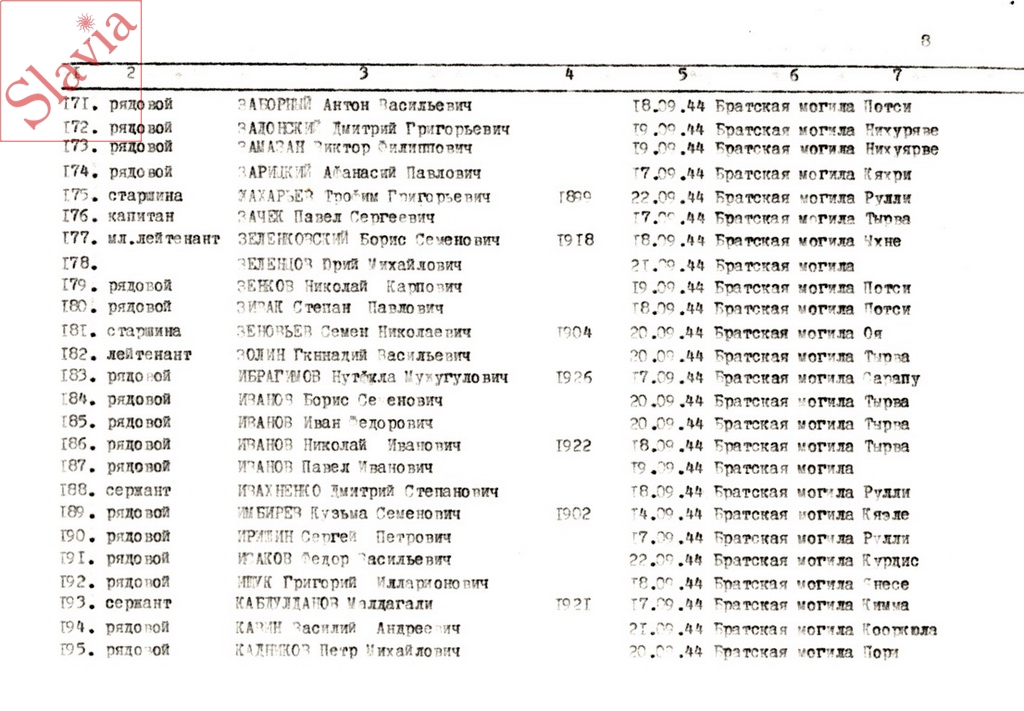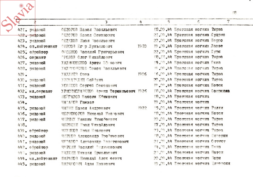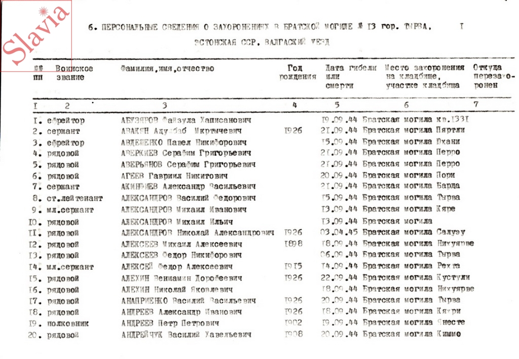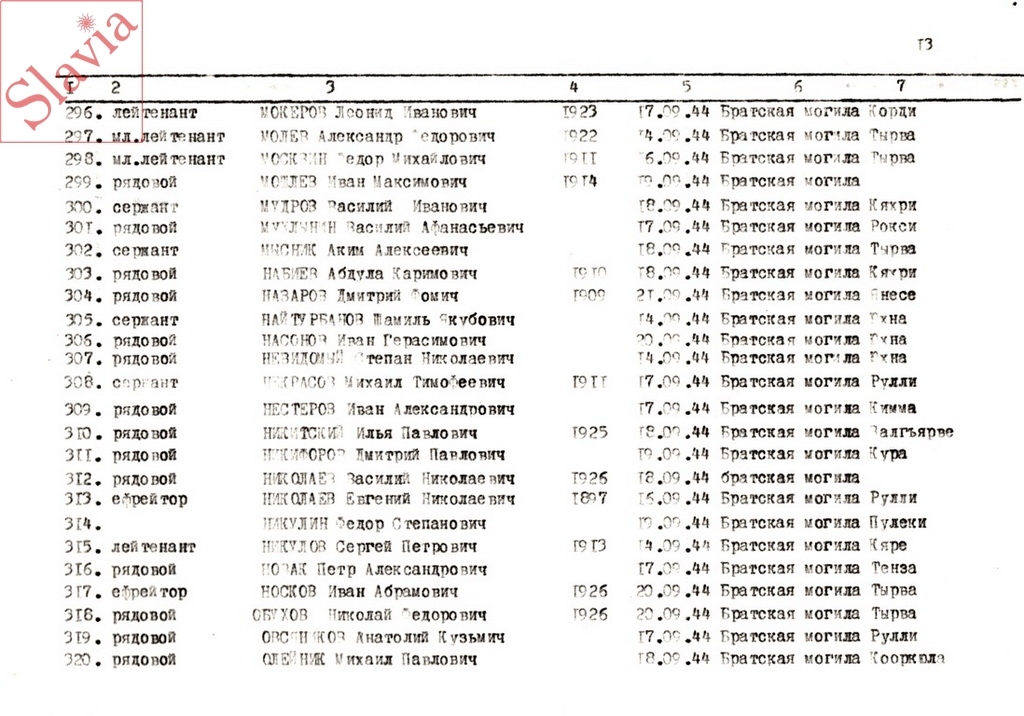 ПЕРСОНАЛЬНЫЕ СВЕДЕНИЯ О ЗАХОРОНЕННЫХ В БРАТСКОЙ МОГИЛЕ (по состоянию на 12 августа 1991 г.)
