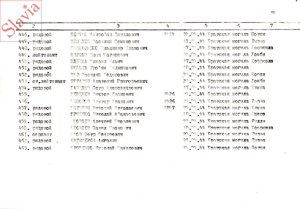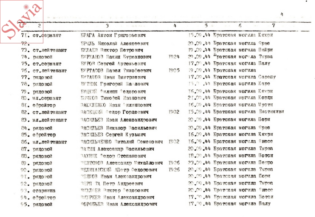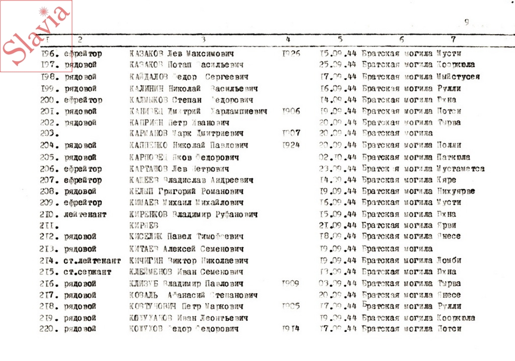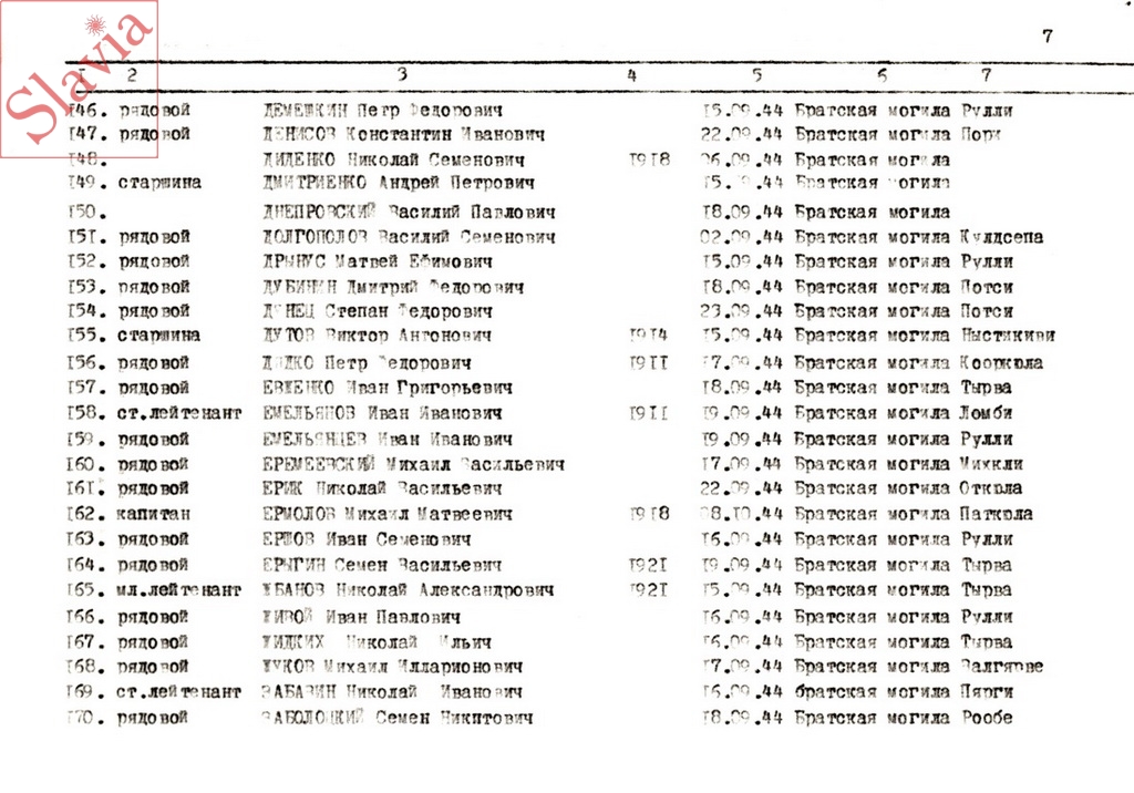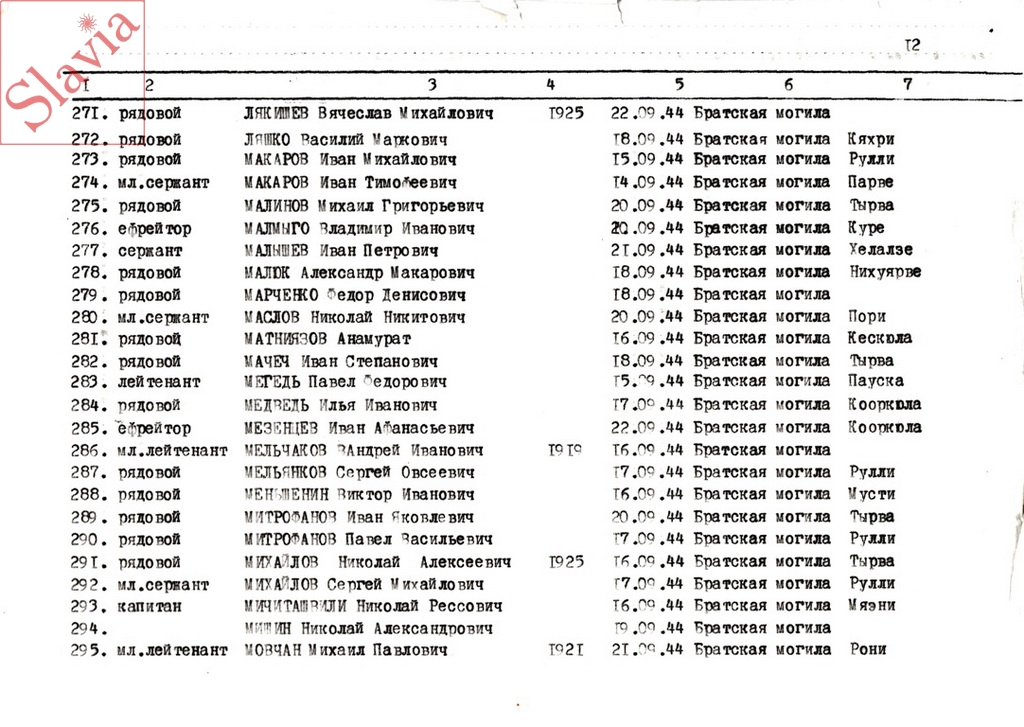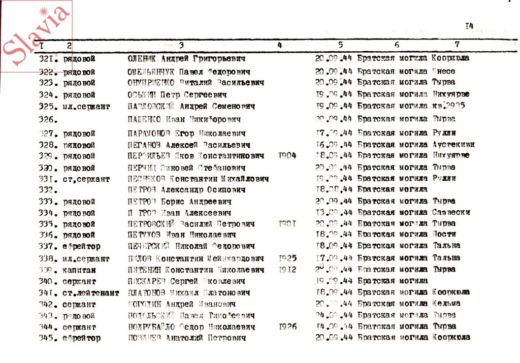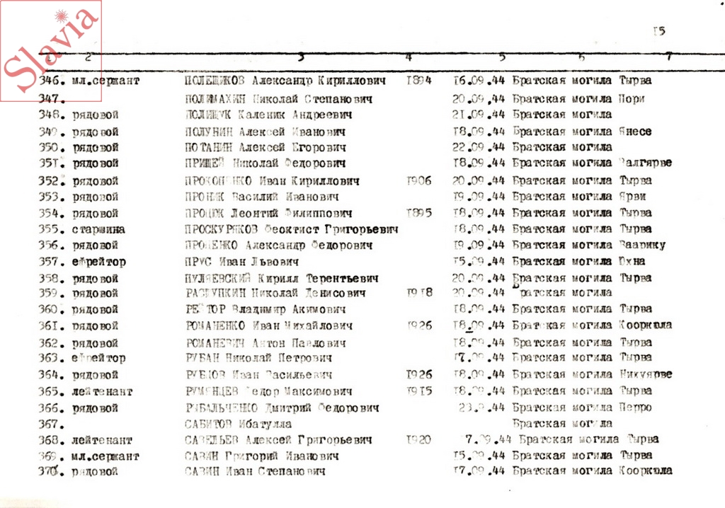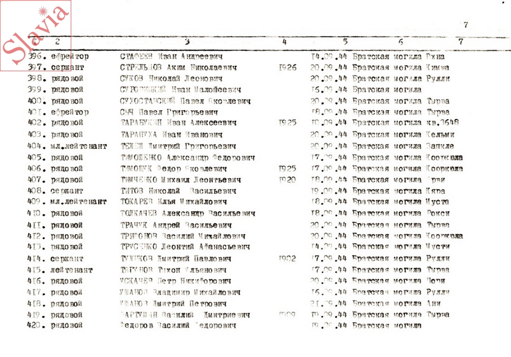 ПЕРСОНАЛЬНЫЕ СВЕДЕНИЯ О ЗАХОРОНЕННЫХ В БРАТСКОЙ МОГИЛЕ (по состоянию на 12 августа 1991 г.)