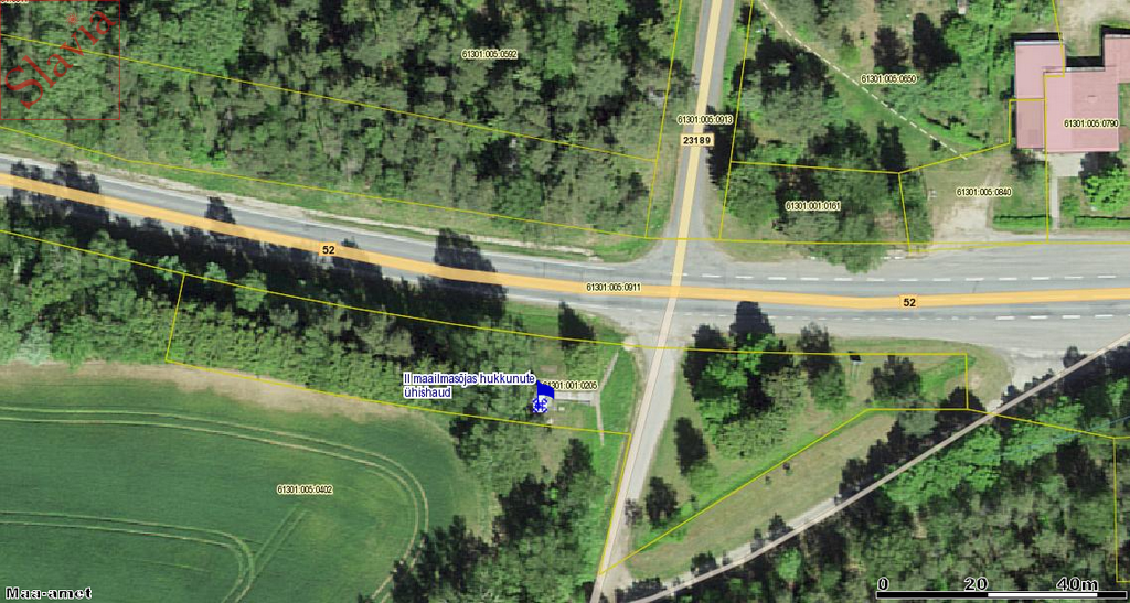 «Размеры братской могилы, расположенной в непосредственной близости от шоссе, составляют 5х6 м. Памятник на братской могиле состоит из трёх гранитных блоков, установленных один на другой. Блок I — 138х43х70 см, блок II — 102х77х43 см, блок III — 75х96х13 см. На среднем блоке установлена мемориальная доска с высеченным текстом: «Герой Советского Союза лётчик-лейтенант Яков П. Ляхов погиб 17 сентября 1944 года в боях за освобождение г. Валга». Высота букв – 6 см и 2 см. В верхней части высечены годы 1941–1945 и текст: «Советским воинам, павшим в Великой Отечественной войне».» Реестр памятников культуры