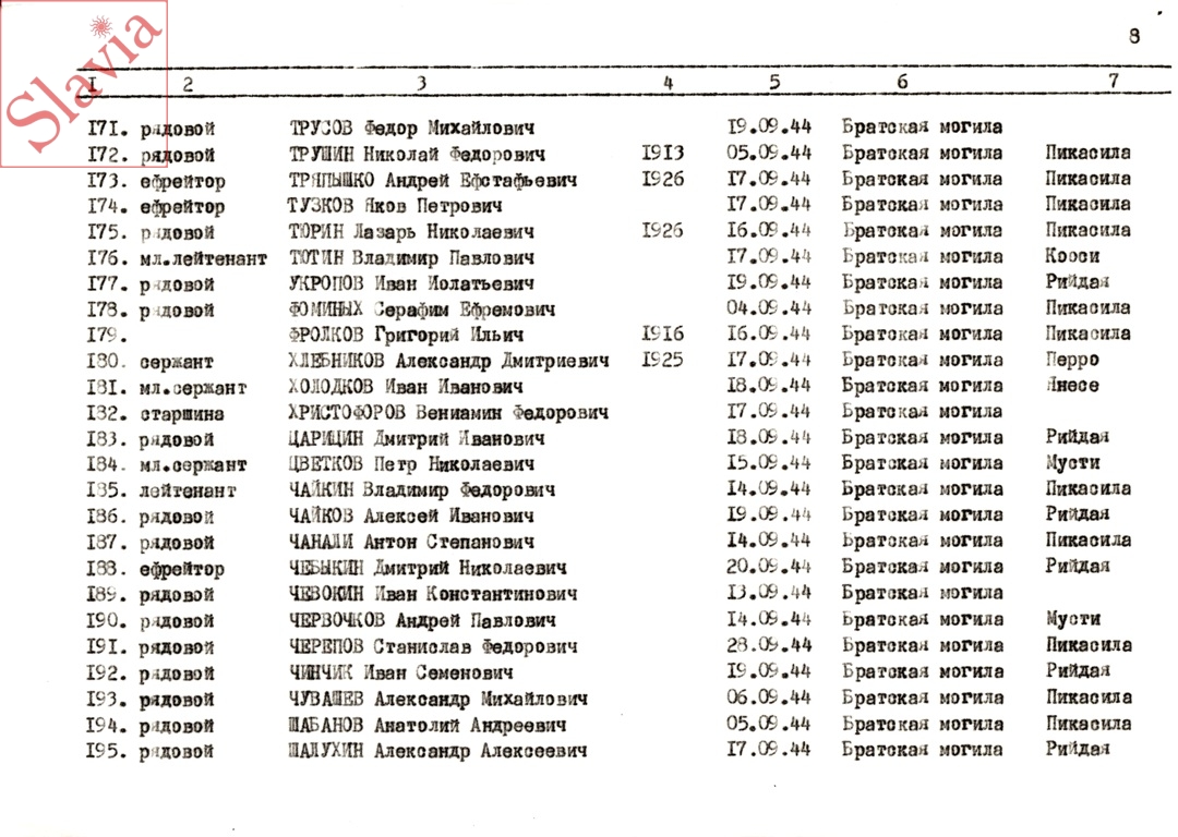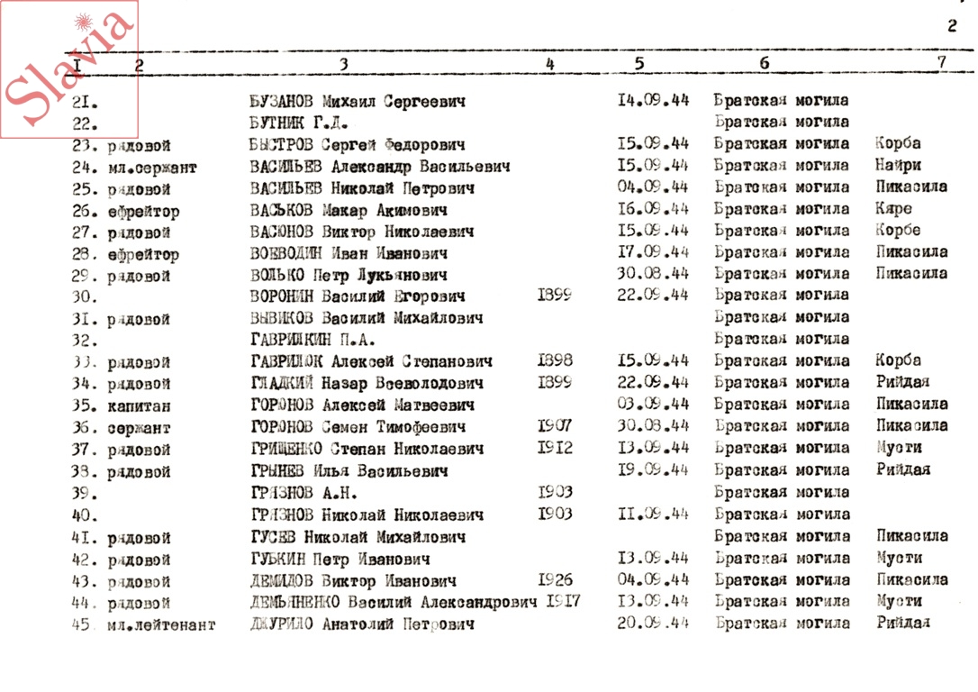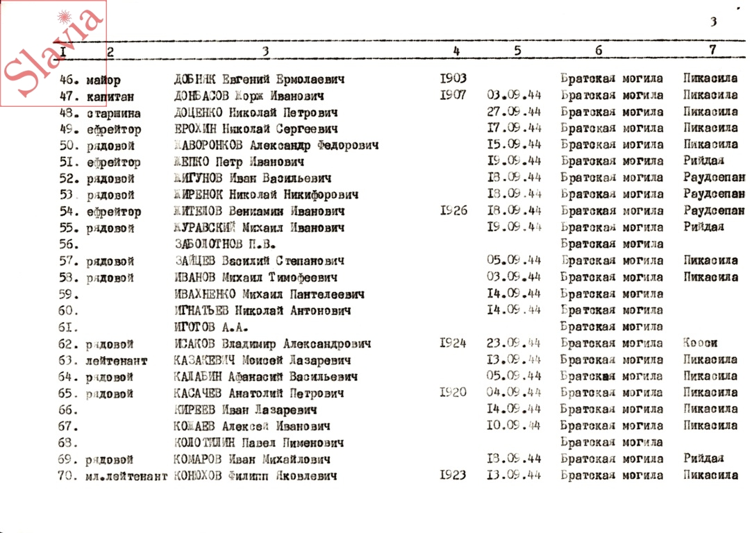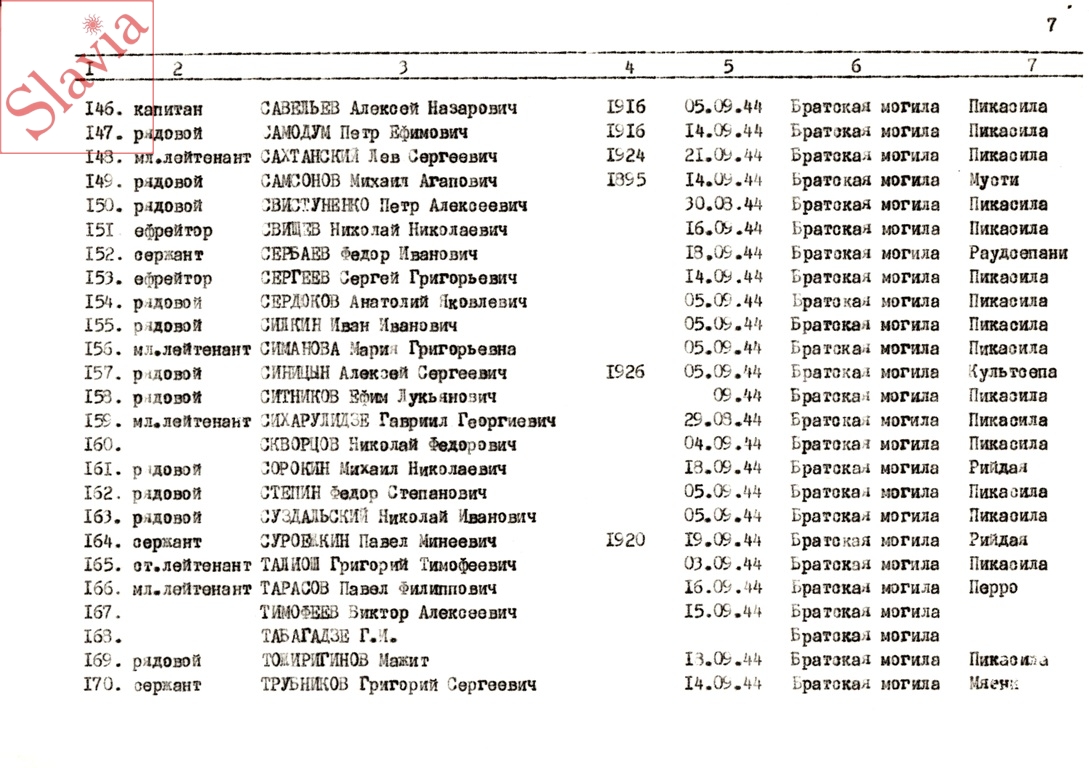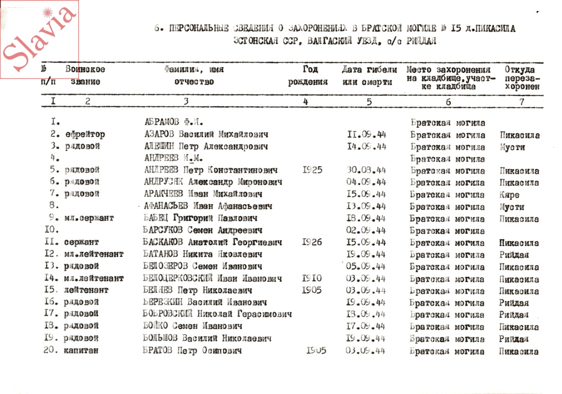 ПЕРСОНАЛЬНЫЕ СВЕДЕНИЯ О ЗАХОРОНЕННЫХ В БРАТСКОЙ МОГИЛЕ (по состоянию на 12 августа 1991 г.)