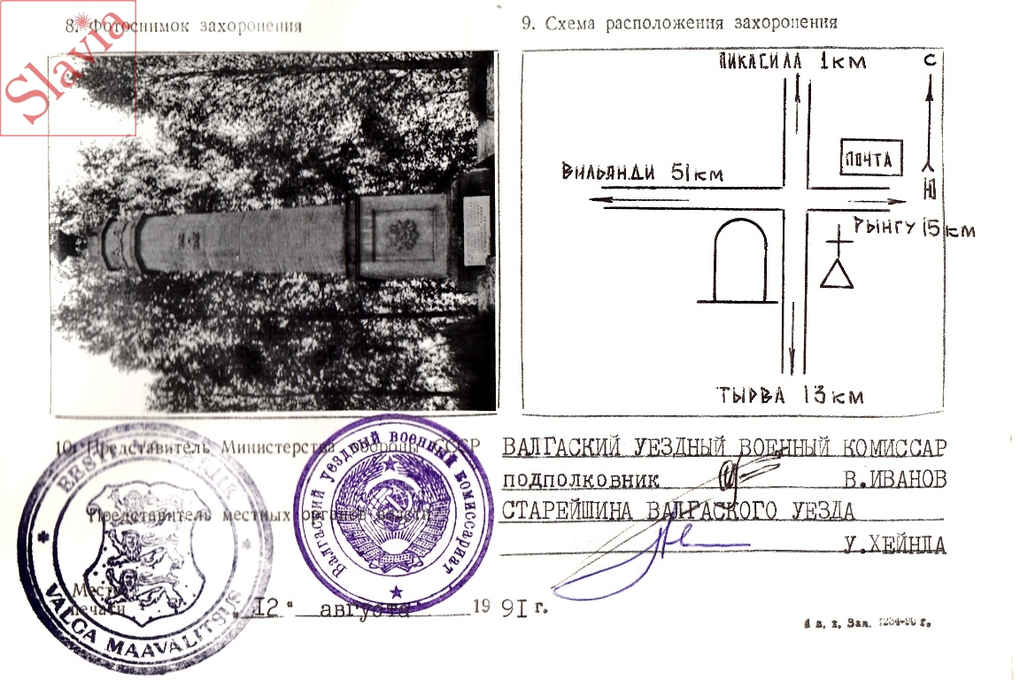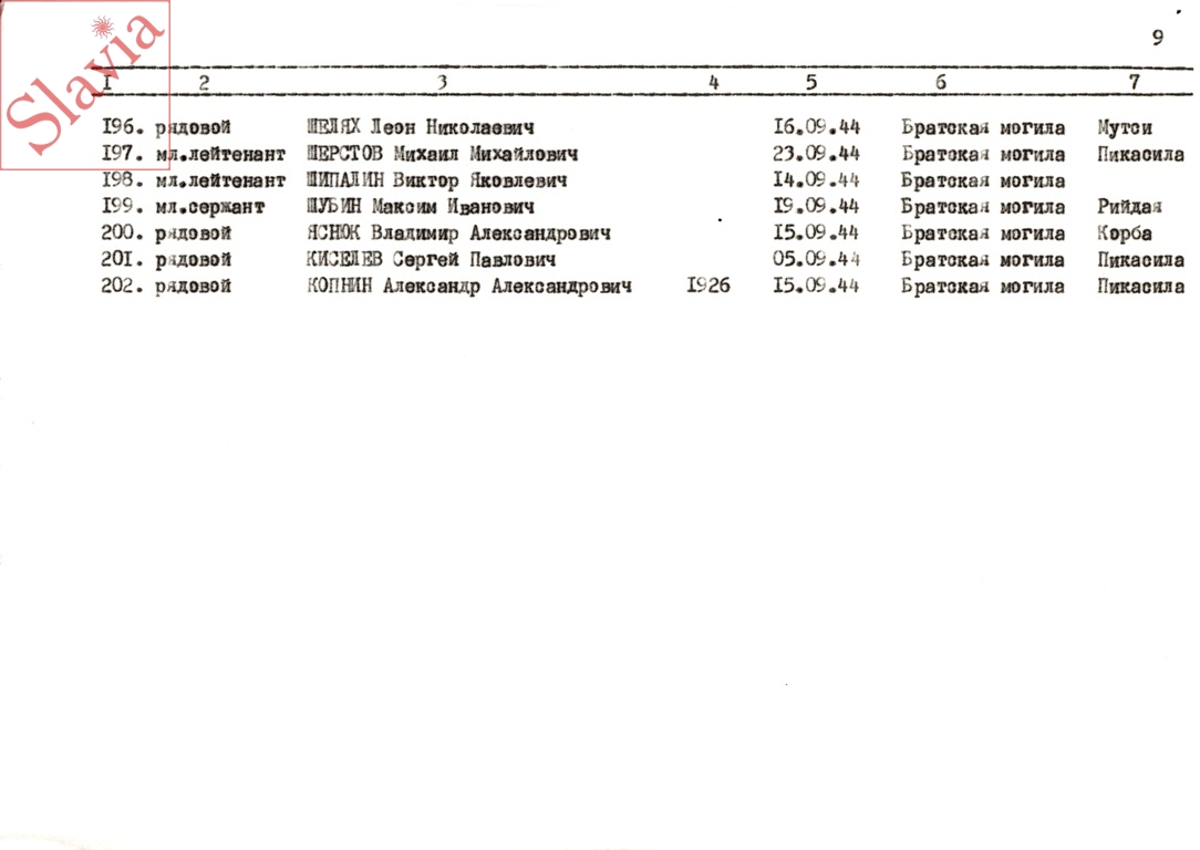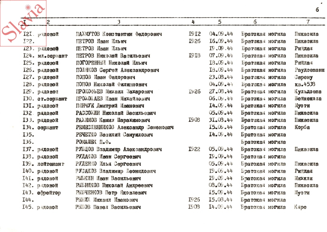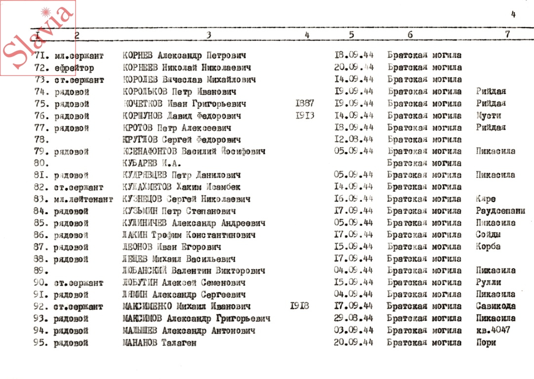 ПЕРСОНАЛЬНЫЕ СВЕДЕНИЯ О ЗАХОРОНЕННЫХ В БРАТСКОЙ МОГИЛЕ (по состоянию на 12 августа 1991 г.)