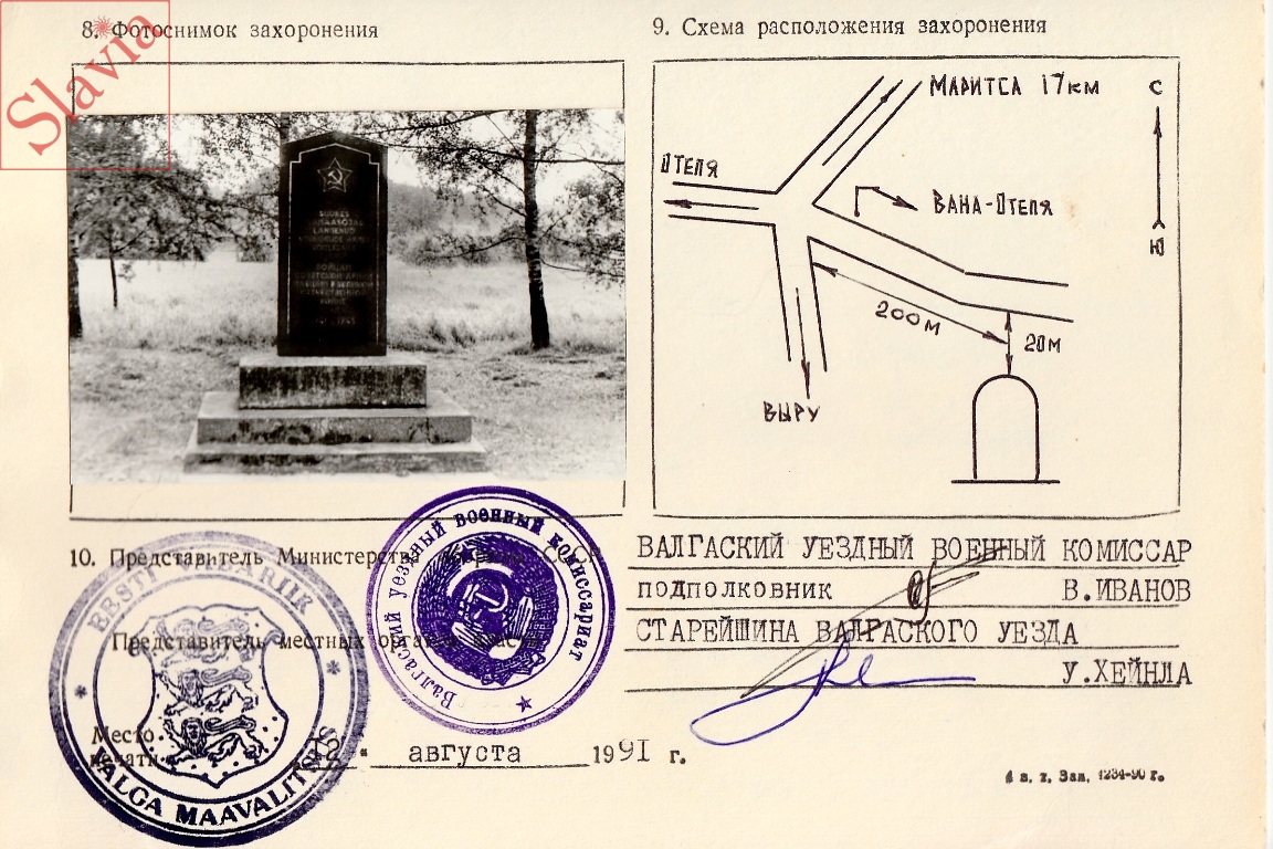 Другое наименование: Валгаский район. Отепя дер. Воинское захоронение № 18