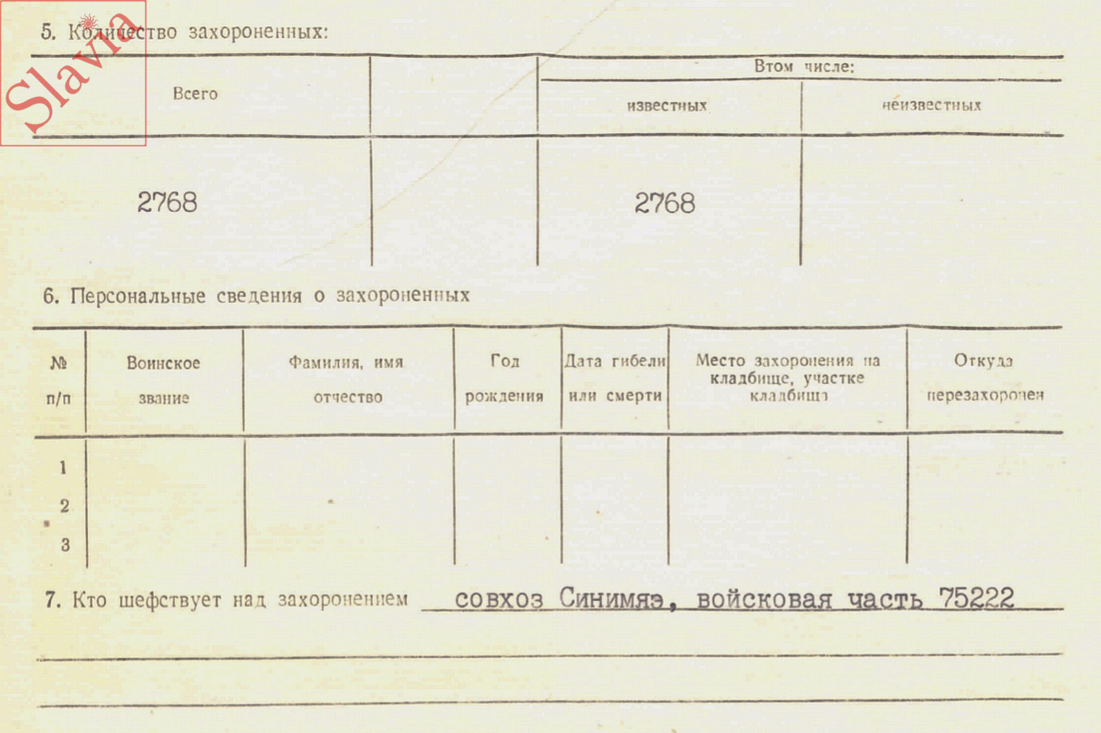 Братская могила из отдельных захоронений. Количество захороненных - 2768/ В том числе: известных - 2768 (по состоянию на 12 августа 1991 г.)