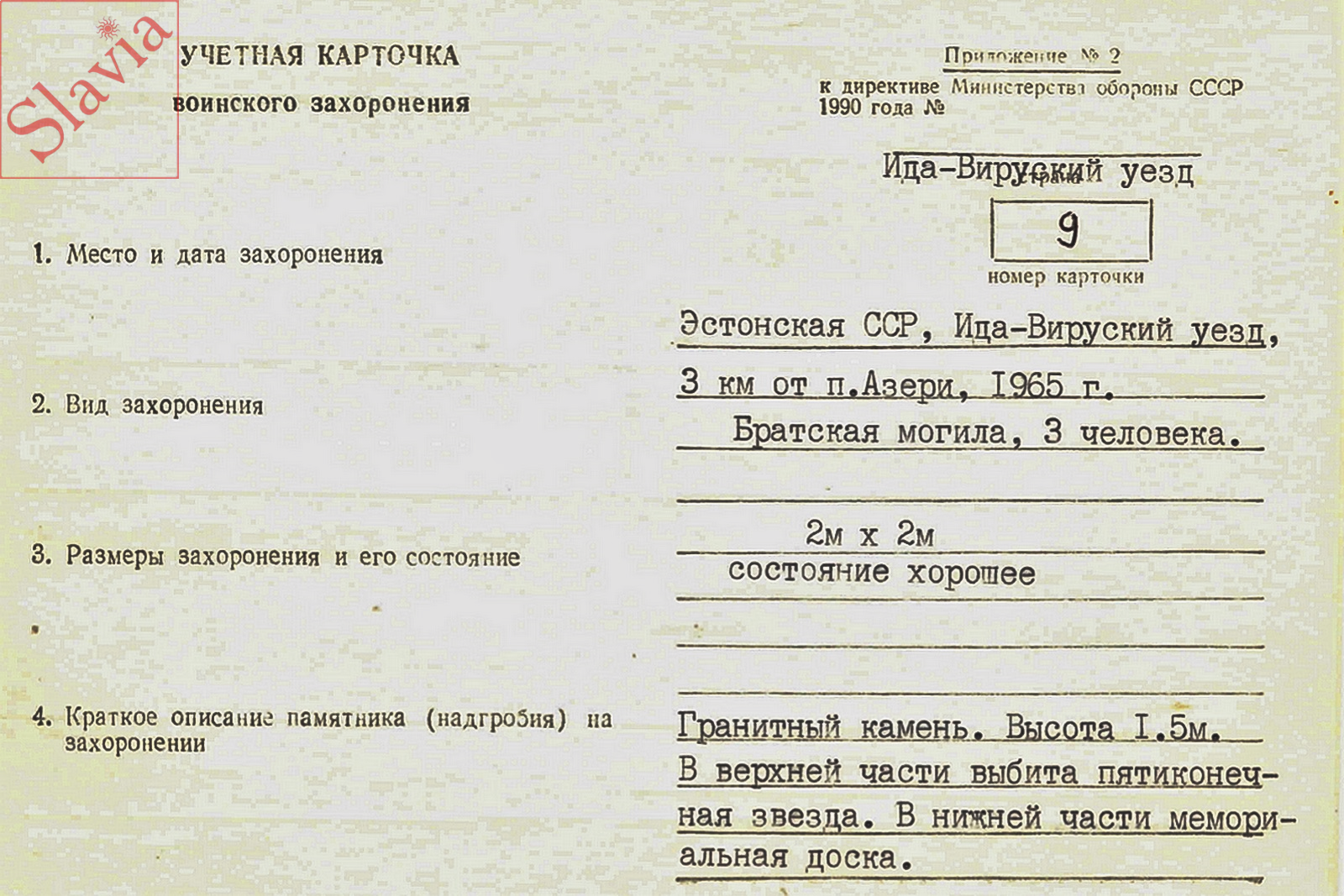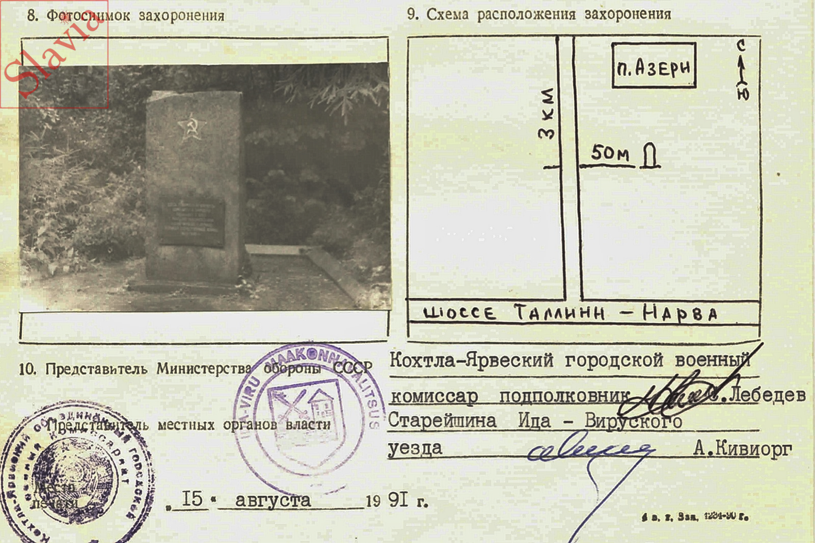 Другое наименование: Кохтла-Ярвенский район. Азери. Воинское захоронение № 9