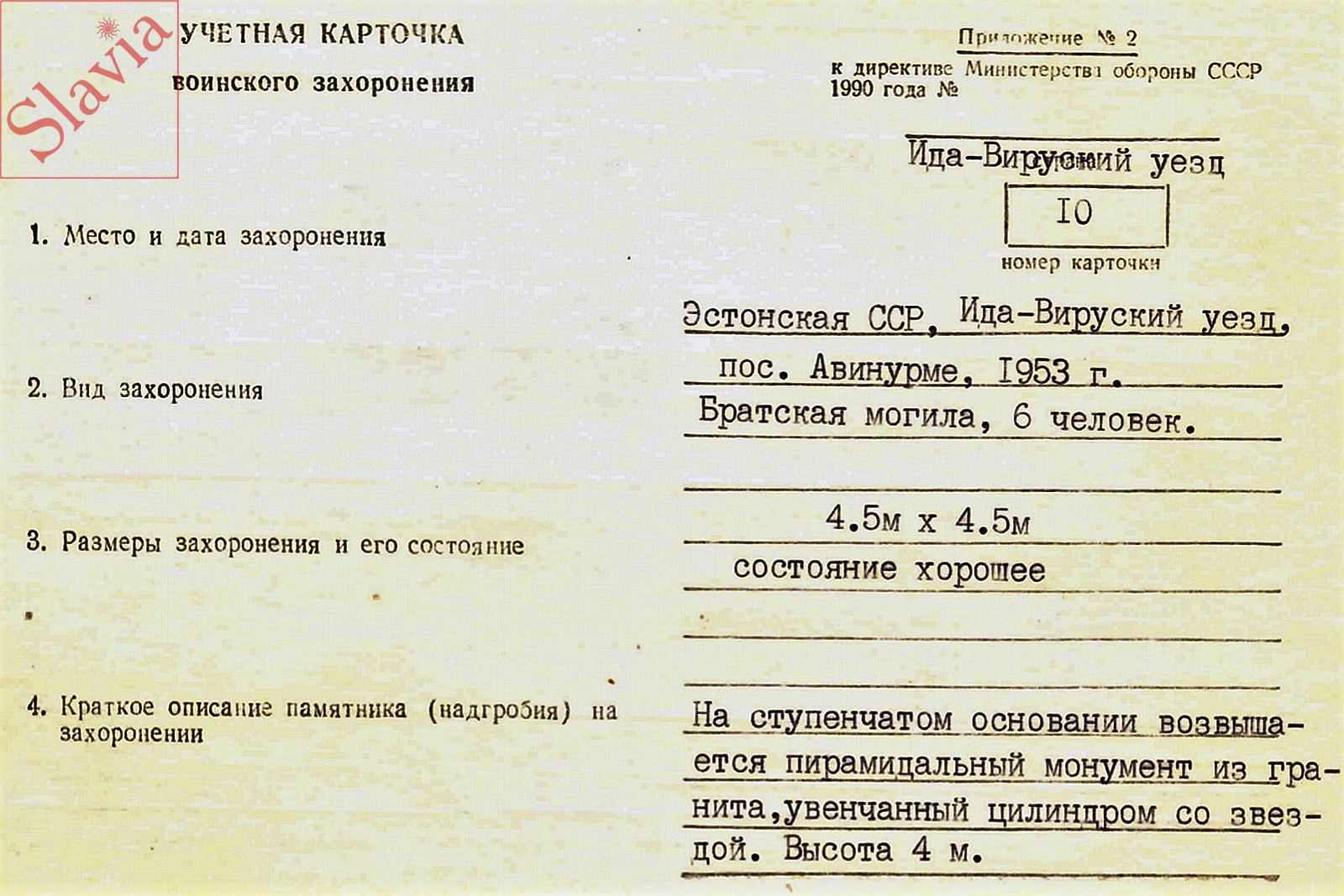 Другое наименование: Кохтла-Ярвенский район. Авинурме. Воинское захоронение № 10