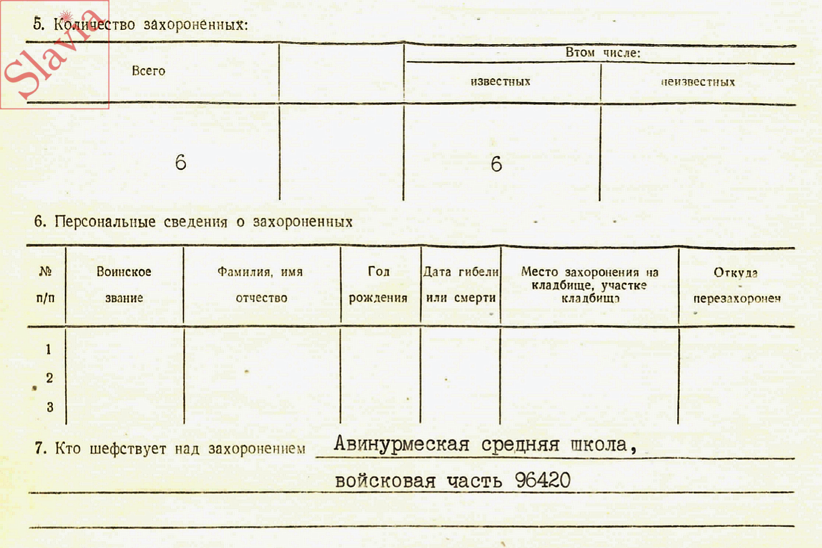 КОЛИЧЕСТВО ЗАХОРОНЕННЫХ: 6