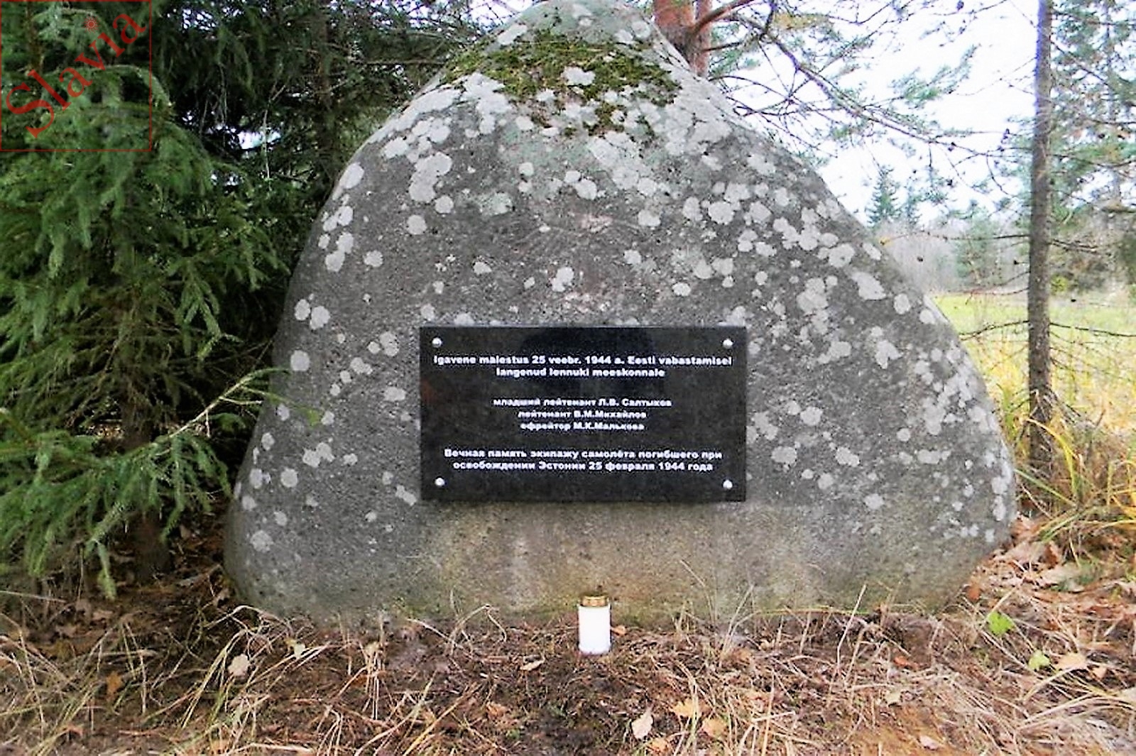 Кивиыли. Памятный знак экипажу самолёта ПЕ-2 на частной территории