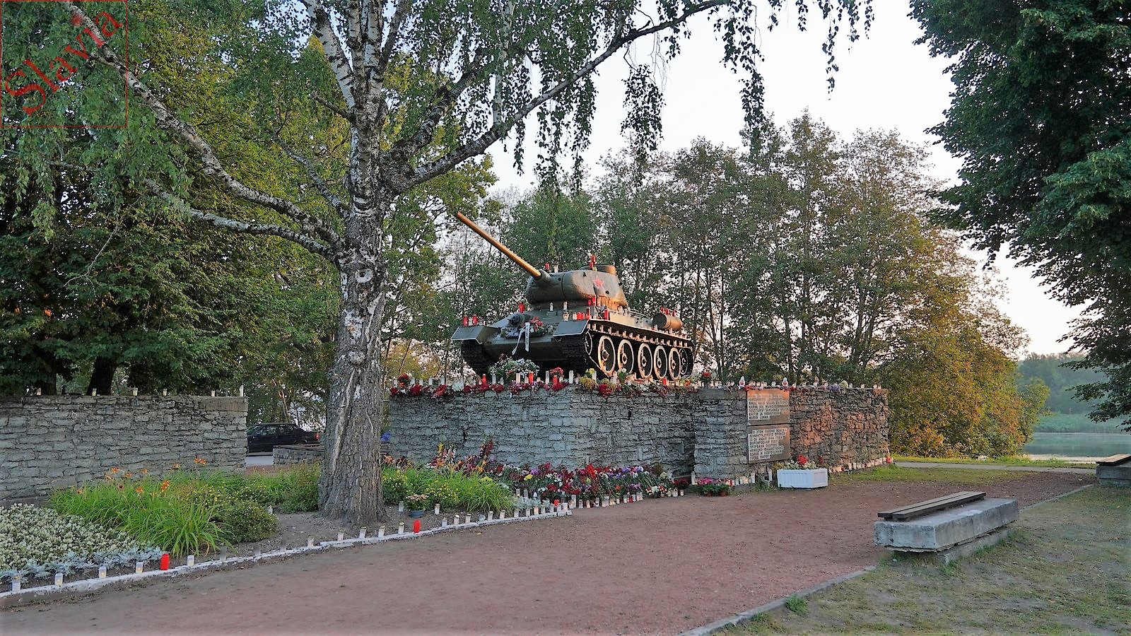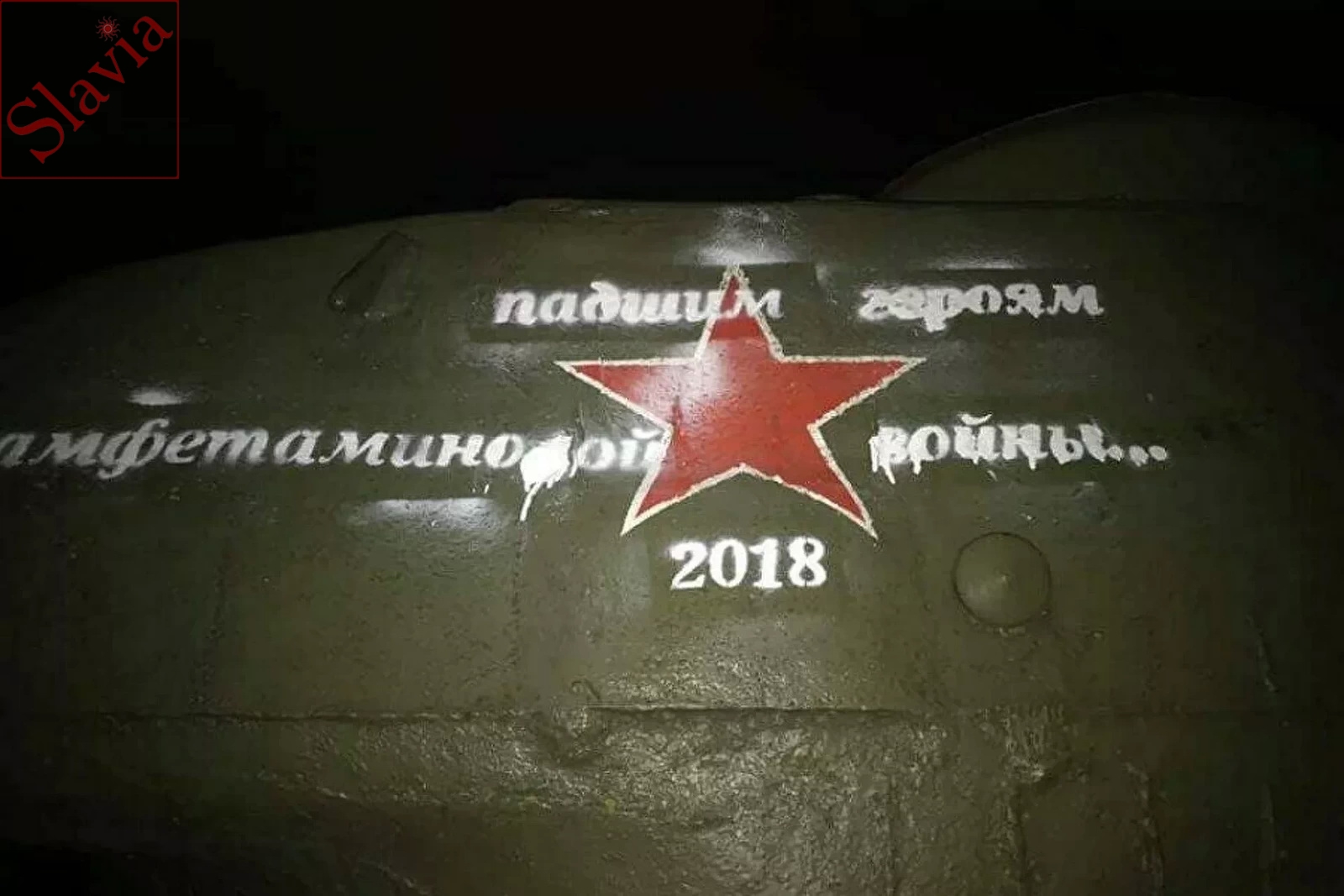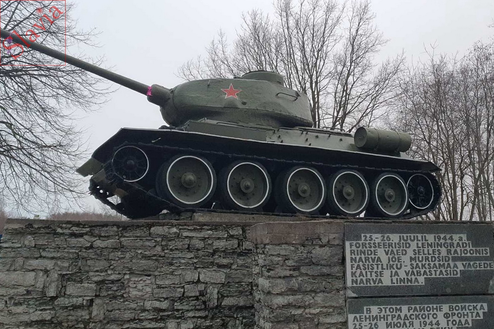 9. Памятник «Танк Т-3485» на месте форсирования р. Наровы. 1 марта 2021 г. стало известно об осквернении памятника. Фото - Facebook MTÜ Pamjat.